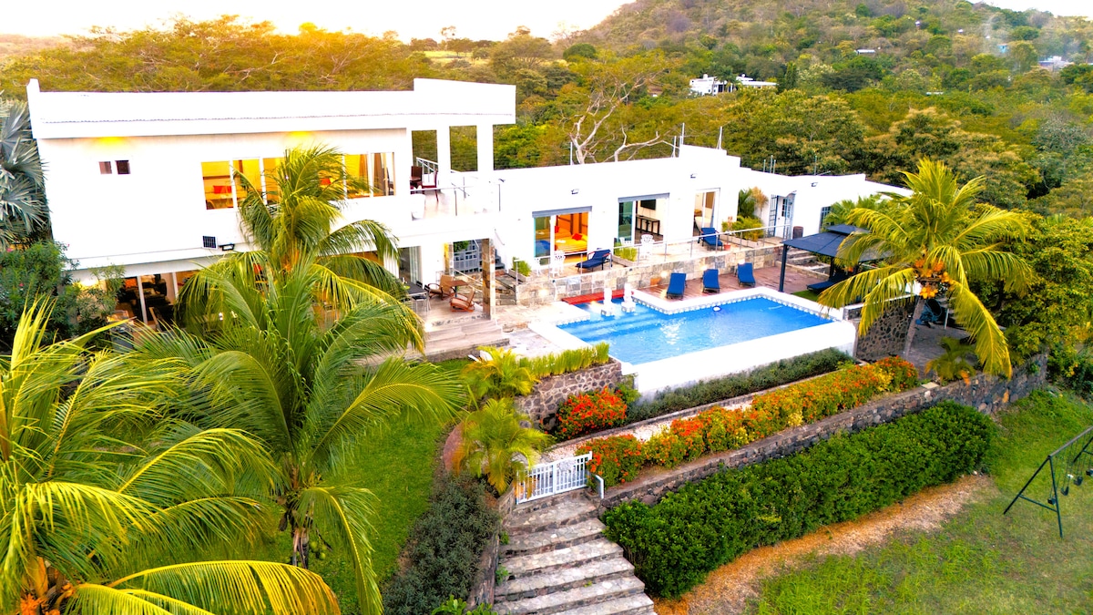 Casa Carmelo is a unique luxury home, with guest house, overlooking Lake Nicaragua, the Isletas, and the city of Granada. At this higher elevation (1666'), the temperature is always 10 degrees cooler than Granada. Make this your home base for exploring the most beautiful section of Central America. You will find coffee, chocolate and canopy tours, world class fishing AND surfing nearby! This house includes a gorgeous luxury home AND a cute guest house with a kitchen, a bedroom and a bathroom.