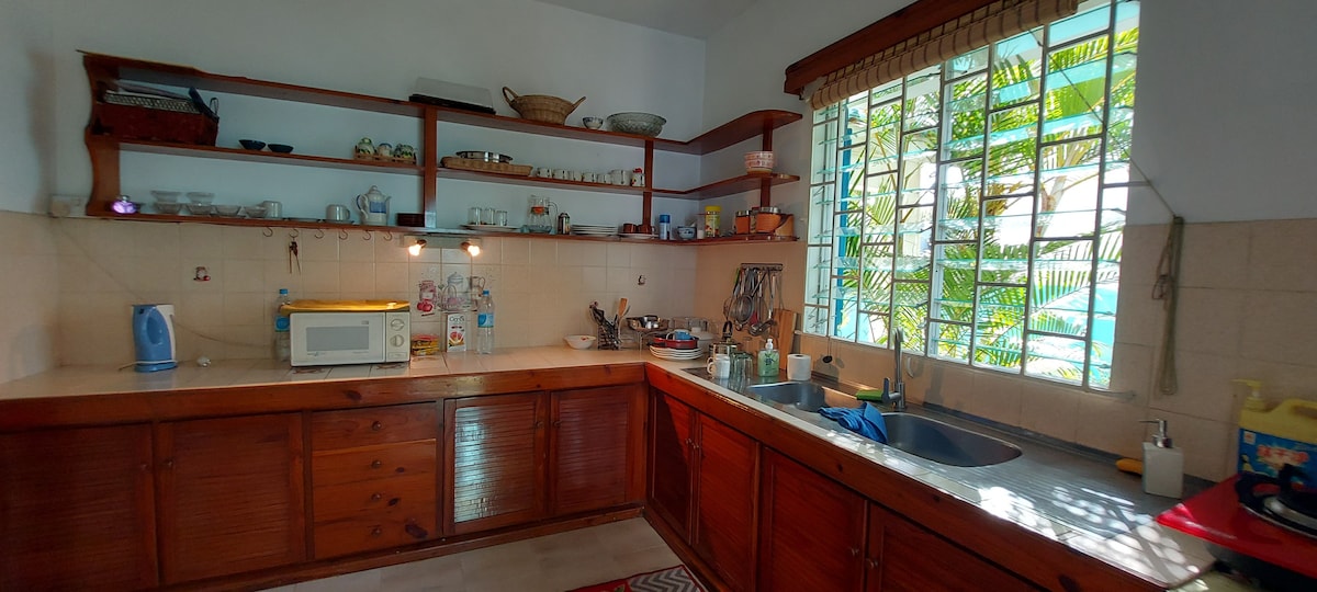 Uma autêntica casa de férias que fica mesmo numa praia deslumbrante com uma lagoa fantástica. Projetado por um dos arquitetos mais famosos da ilha, é um lugar onde a vida é igual a serenidade e felicidade. Acorde com o som dos pássaros, beba um café sob os coqueiros, mergulhe na lagoa deslumbrante e deite-se na rede. A casa é servida diariamente pelas nossas duas adoráveis senhoras de limpeza que têm muito orgulho em preparar deliciosos pratos locais. Perfeito para casais, pois é para famílias.