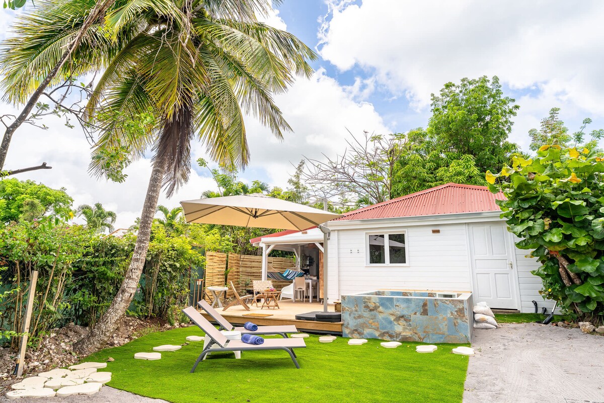 Damos-lhe as boas-vindas com prazer neste bungalow de madeira com jacuzzi privado, pronto para redescobrir o charme e o conforto para uma estadia relaxante. Tem uma classificação de 3 estrelas e está localizado em Borée Capesterre, no campo, a cerca de 15 minutos das praias e lojas. A área é tranquila, relaxante e não chegam cheiros de sargaço até nós. A roupa de cama é fornecida para a estadia, bem como toalhas de banho. Convido-o a vir desfrutar deste espaço e não ficará desapontado!