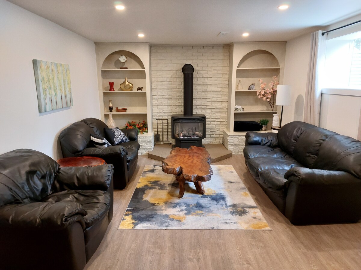Isto é cerca de 2000 pés quadrados de espaço de estar só para você. Temos uma entrada comum na garagem. O aluguel é apenas para o andar de baixo com sua própria porta. Esta suíte no porão tem grandes janelas e muito espaço, bem como uma cozinha. Temos um fogão a lenha para dar a atmosfera aconchegante do país. Esta é uma casa mais nova com um ambiente descontraído, TV smart de 60” com DVD player, chuveiro a vapor e mesa de bilhar para sua diversão. Área muito tranquila cercada por um campo de feno, com lareira e área de estar.