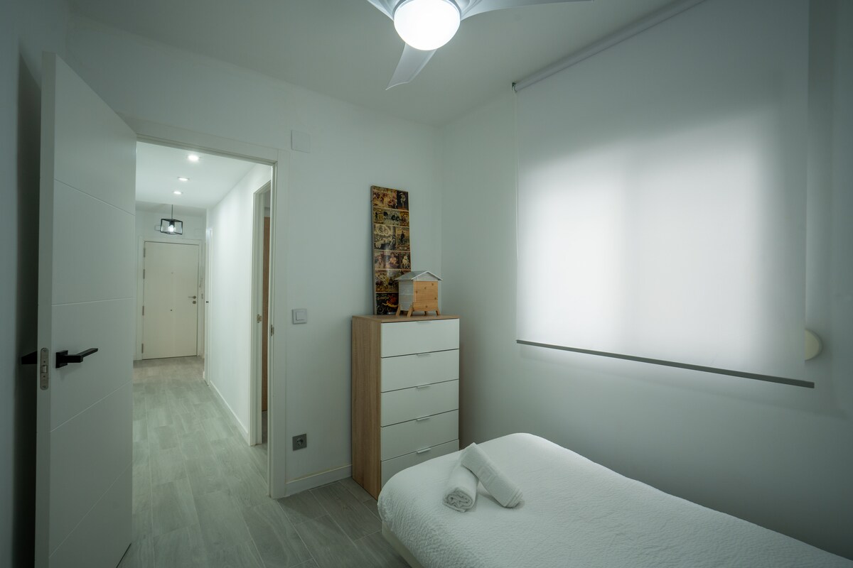 Não aceitamos grupos de crianças com menos de 23 anos de idade! Desfrute do verão e da melhor praia de Valência neste apartamento moderno com todos os confortos. Apenas a uma caminhada pela avenida principal da praia de areia. Todos os serviços a cerca de 5 minutos a pé: Supermercado, escola, Universidade de Valência, estação ferroviária, centro médico, estacionamento público. Perfeita para famílias, grupos e casais. Tanto no inverno para trabalhar online como especialmente no verão, para desfrutar ao máximo. 2 terraços para animais de estimação