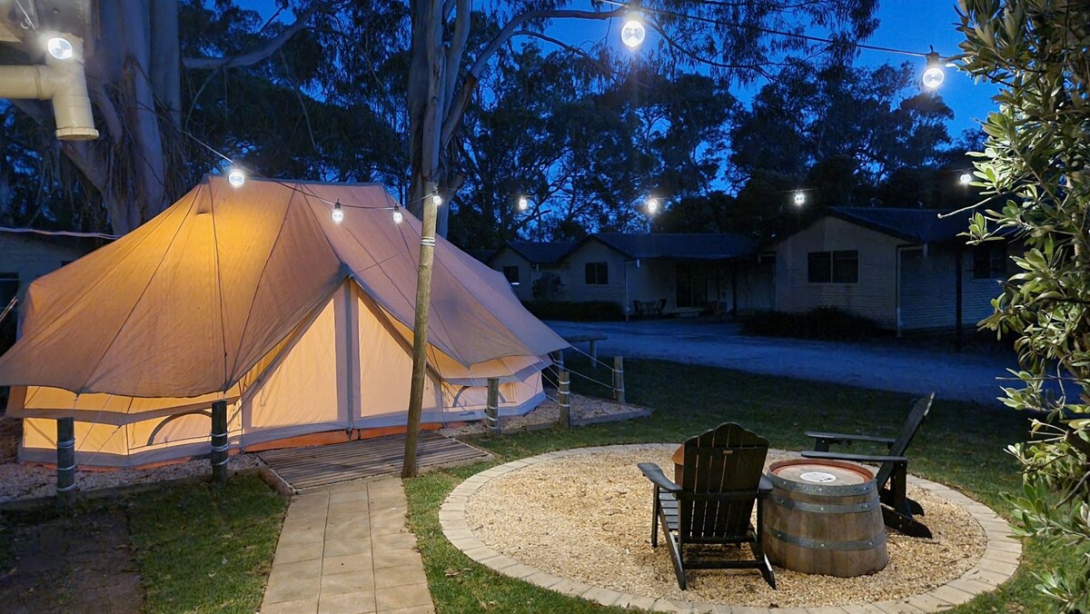 As nossas 2 tendas glamorosas oferecem uma experiência única de glamping entre as imponentes árvores de eucalipto nas colinas de Adelaide. Relaxe na banheira de luxo para 2 pessoas ao ar livre, aconchegue-se junto à lareira ou explore a área local. Oferecemos uma tenda com cama king e/ou uma tenda com 2 camas queen, sempre sob a mesma reserva, para garantir a sua privacidade. Por favor, informe-nos sobre a configuração de cama necessária. Também podemos fornecer pequeno-almoço ou cabazes de "mimos" para completar a sua escapadela. Uma taxa de limpeza adicional aplica-se se ambas as tendas forem necessárias