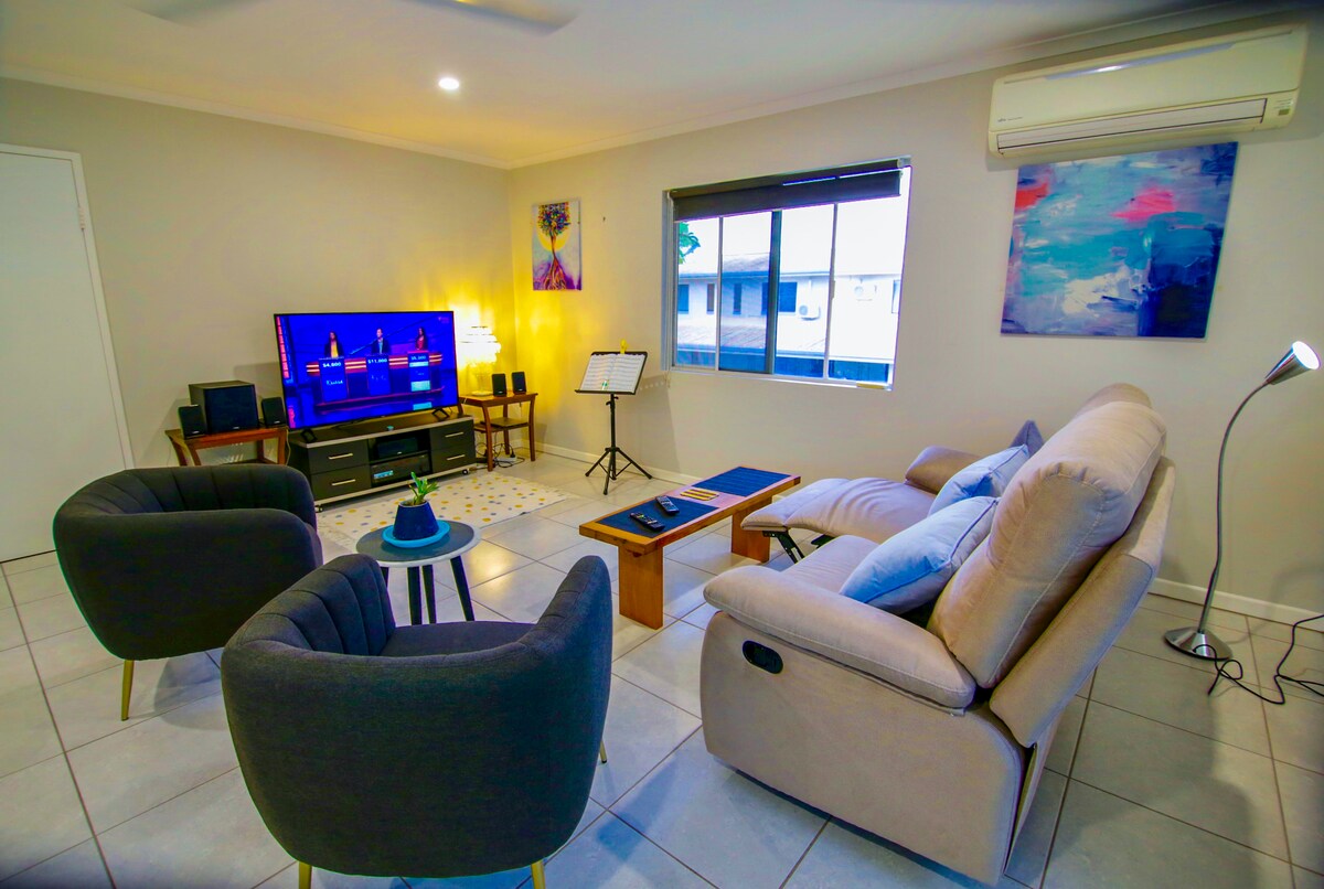 Bem-vindo ao nosso pequeno pedaço do céu. Novo da cabeça aos pés. Localizado a uma curta caminhada do centro da vila e da praia, você terá seu próprio apartamento totalmente equipado com Wi-Fi gratuito e uma máquina de café Nespresso. Instalações completas de lavanderia, incluindo uma máquina de lavar e secar roupa. Temos TV a cabo, tudo disponível em uma TV grande. O belo estilo costeiro da nossa casa se encaixa perfeitamente com a vibe de Port Douglas, tornando-a uma casa para lembrar. Amplo estacionamento na rua.