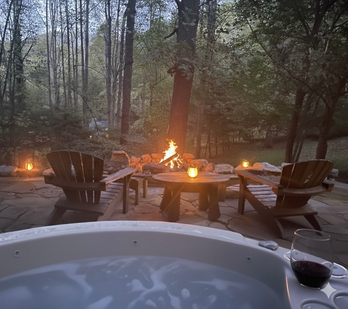 Romantic cabin for 2 creek + waterfalls+ hot tub