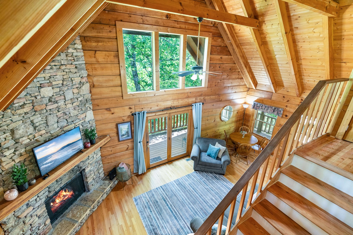 Uma escapadela perfeita numa cabana num retiro privado na montanha com 2 quartos (camas king e queen), 2 casas de banho, tetos altos, lareira e fogueira acolhedora ao ar livre. Muitos trilhos nas proximidades: é o charme que procura quando visita as montanhas Blue Ridge e explora Asheville, Maggie Valley, Blue Ridge Parkway, Parque Nacional Great Smoky Mountains, tudo a uma hora de carro. Não pode deixar de ficar calmo e relaxado quando chegar e se sentar nas cadeiras de balanço no alpendre da frente. A tranquilidade começa aqui!