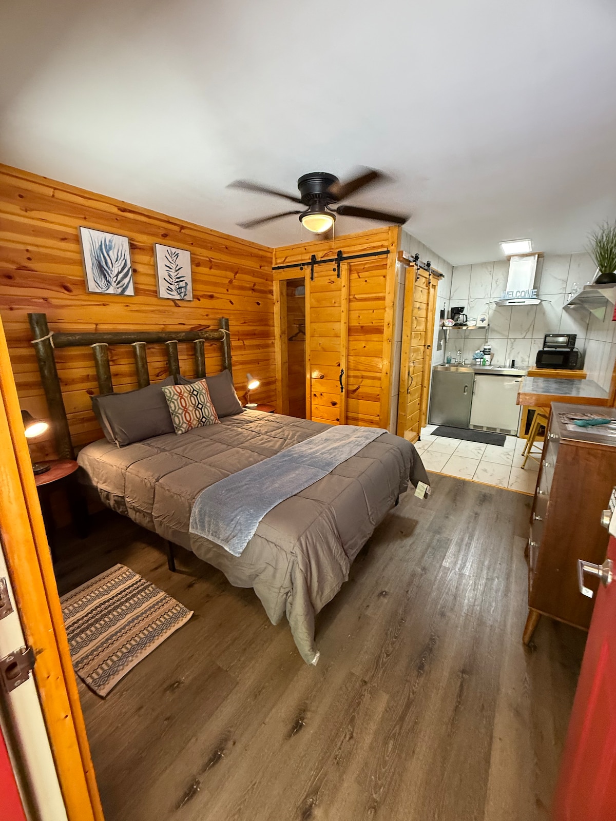 VAI ADORAR O nosso espaço, pois é o mais moderno, recentemente remodelado com todas as comodidades frescas e modernas! Não só está a 1,6 km do LeConte Center, Cal Ripken Baseball Parks, The Island, mas também o coração de Pigeon Forge! Na floresta, mas perto da ação! Vai ter um estúdio totalmente privado com chuveiro walk-in, smart TV de ecrã plano de 42", mini-cozinha para preparação de refeições e uma cama de plataforma de colchão de espuma de memória de 10" que é incrivelmente confortável!