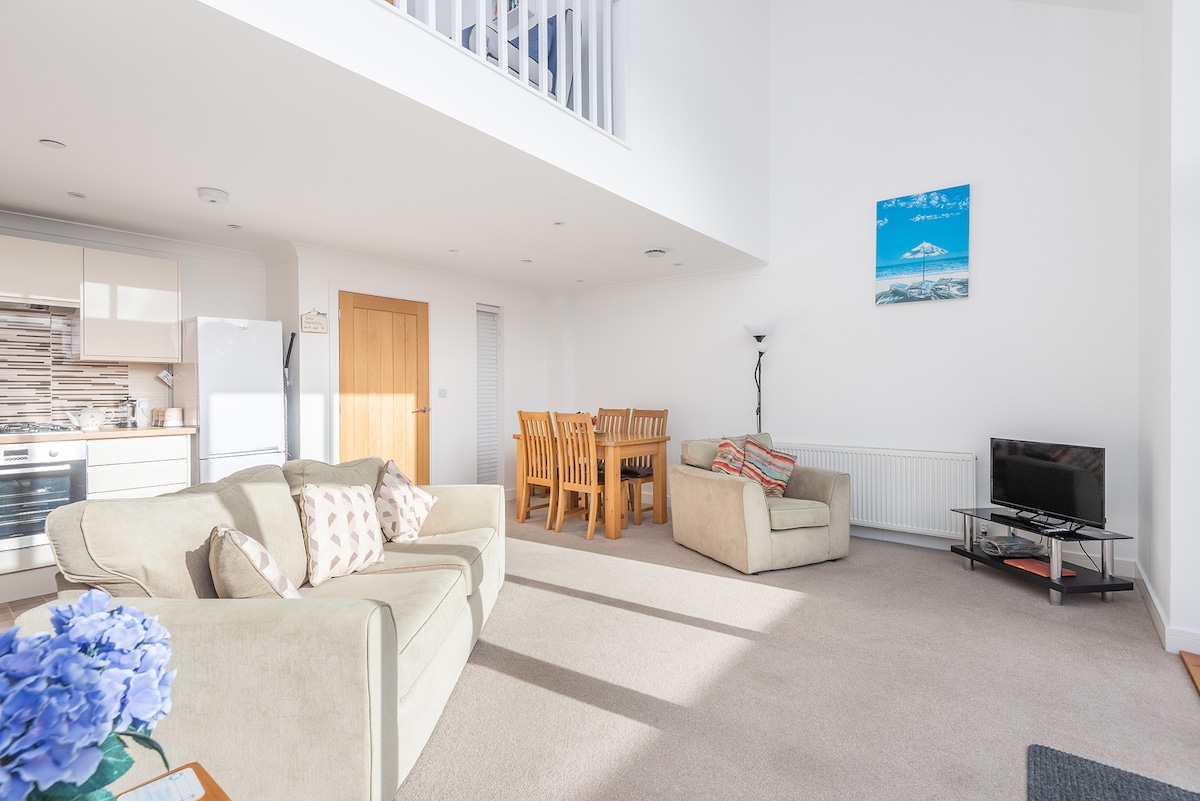 Bem-vindo (a) aos Huers! Um apartamento elegante e perfeitamente localizado a apenas alguns minutos a pé da praia de Towan e a segundos da rua principal. O alojamento inclui 1 quarto duplo com chuveiro em cascata, cozinha totalmente equipada ligada a uma sala de estar em plano aberto onde o sofá-cama acomoda 1 ou 2 hóspedes adicionais. Para o máximo de conforto, consideramos Huers ideal para apenas um casal. Ambos os quartos têm grandes janelas de velux, tornando Huers um espaço leve e arejado.
