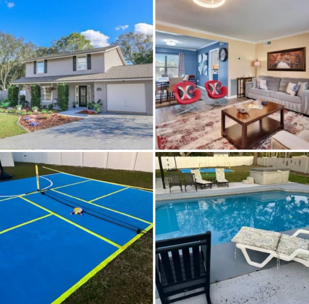 Cama king, piscina, banheira de hidromassagem, basquete, pickleball