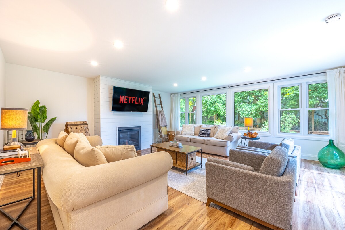 Bem-vindo ao Vineyard Views, uma quinta moderna que aceita animais de estimação, situada em meio acre na região vinícola de Niagara! Renovado em 2022, este bungalow elevado fica a 5 minutos de carro da Cidade Velha de NOTL. Estamos a poucos minutos de inúmeras adegas/quintas e de tudo o que Niagara-on-the-Lake tem para oferecer. A nossa bela casa está preparada para ver o pôr do sol deslumbrante, receber hóspedes e é perfeita para famílias e amigos. Um oásis no quintal com sauna, campo de bocha, círculo de conversação, conjunto de jantar no pátio, relvado grande, churrasqueira, privacidade e muito mais!