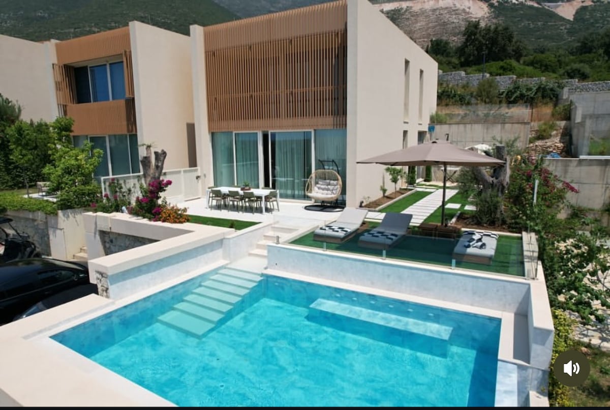 Refugie-se na Villa Jerina | Costa Verde, uma moradia de luxo com 3 quartos e 2 casas de banho, com uma encantadora casa de hóspedes em Palasë, Vlorë. Desfrute de um refúgio à beira-mar com uma piscina cintilante, um jardim exuberante, uma banheira de hidromassagem e um pátio ensolarado com vistas deslumbrantes para o mar. Os interiores elegantes combinam conforto e estilo, perfeitos para partilhar momentos inesquecíveis. A poucos passos de restaurantes, da vida noturna e da estância, é um refúgio ideal para famílias ou amigos que procuram uma escapadela costeira memorável.