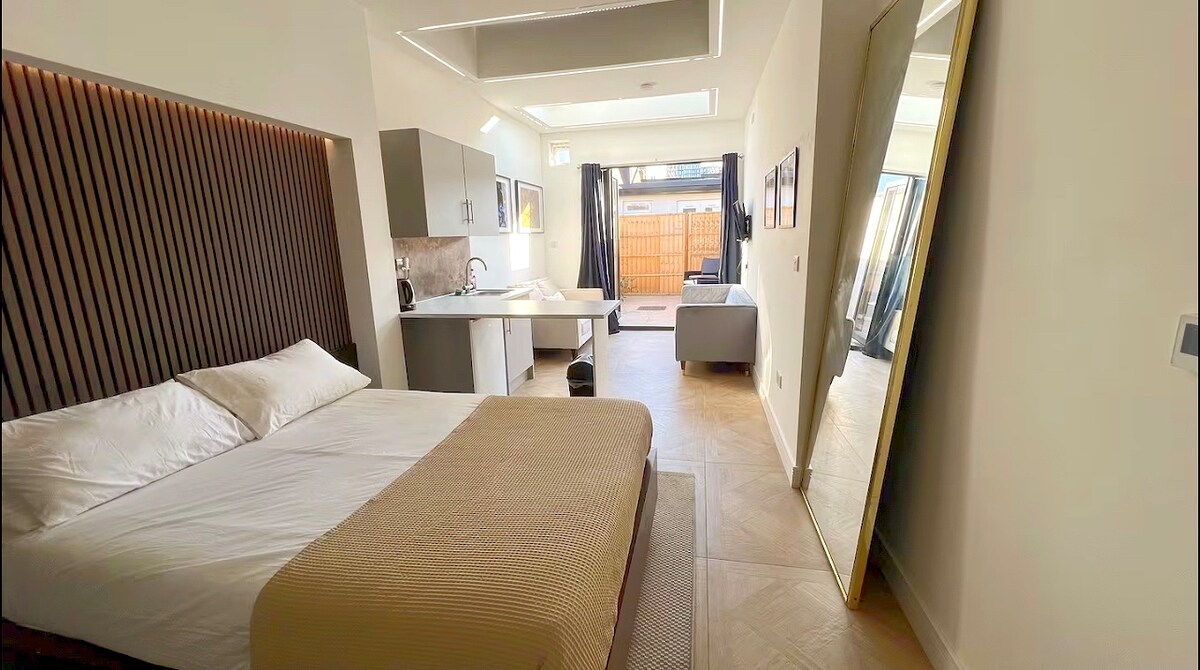 Este estúdio bem proporcionado, com grandes portas dobráveis de alumínio que se abrem para um espaço de jardim privado. Desfrute do acesso a uma cozinha luxuosa partilhada com outras pessoas, mas quase sempre vazia. Aquecimento de piso, iluminação LED e uma atraente casa de banho privativa, além de um confortável espaço de jantar e lounge. O Harrow Town Centre, com as suas excelentes lojas e restaurantes, fica mesmo ao virar da esquina. O Harrow on the Hill Station, que o leva rapidamente ao centro de Londres, fica a 7 minutos a pé.