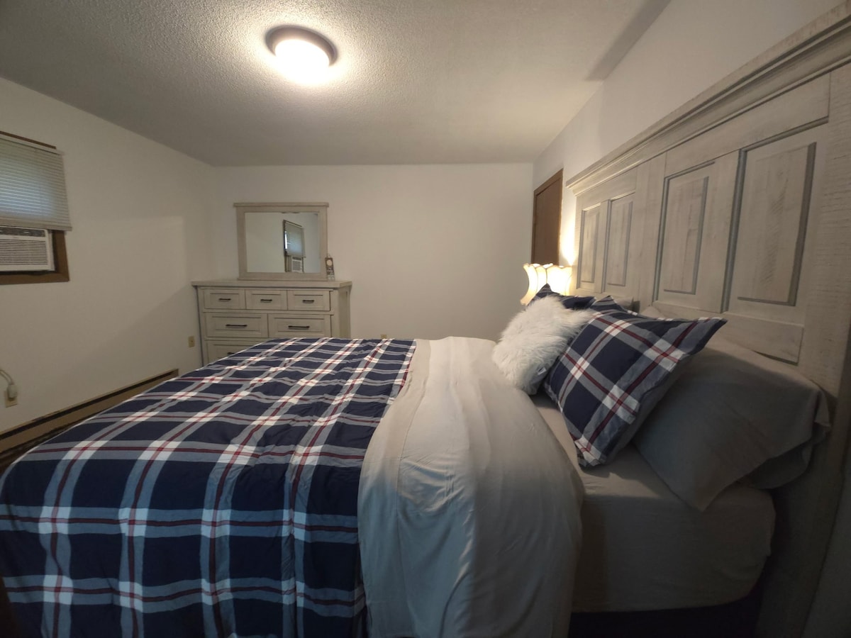 Bem-vindo ao The Shoe Inn! Você estará no centro da cidade a uma curta distância a pé de todos os lugares que você precisa estar: salões de banquetes, cinco bares, restaurantes, mercearia Wessel, sorveteria, igreja, loja de ferragens e parques comunitários. Fechadura inteligente, entrada sem contato está disponível para uma estadia conveniente e segura. Desfrute da máquina de lavar e secar roupa de tamanho completo (sem detergente fornecido), lareira, cozinha americana (sem fogão), estacionamento gratuito, TV Samsung 50" smart TV com centenas de canais a cabo, dispositivo Alexa e Wi-Fi gratuito