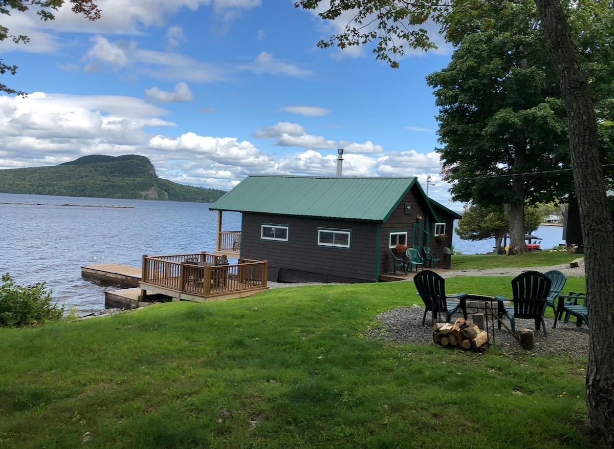 This lakefront vacation home combines rustic charm with modern comfort, making it one of the best options for Maine vacation rentals, Moosehead Lake cabin rentals, and lake cabins. Inside, enjoy stunning lake and mountain views while you relax by the wood-burning fireplace, perfect for cozy evenings in a winter vacation cabin, or whip up delicious meals in the fully equipped kitchen, or enjoy a short stroll to Moosehead Lake during a breathtaking summer sunset!