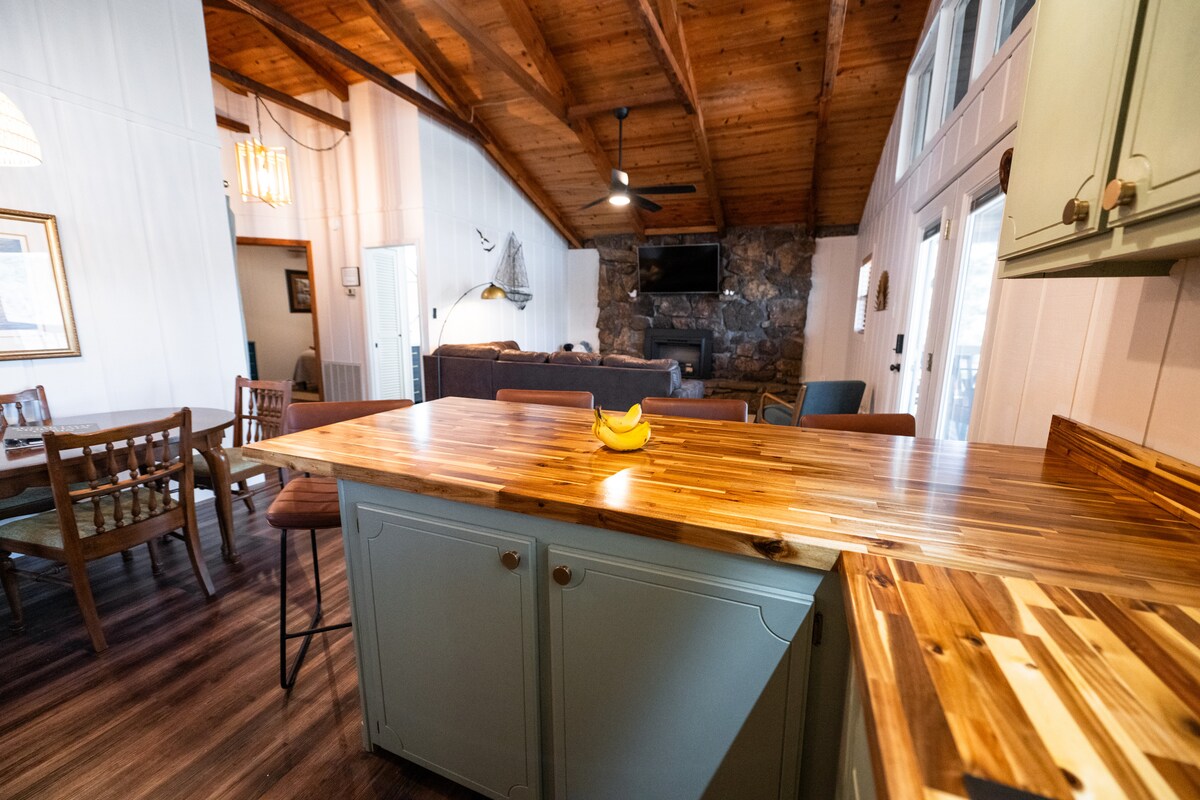 A nossa encantadora casa à beira-mar moderna e montanhosa está situada no topo de um penhasco perto de um belo local para casamentos. Um lançamento de barco público fica a apenas 1 minuto de distância, e os penhascos de salto em Snakehead Cove ficam a uma curta distância de bicicleta/ATV. Desfrute de passes de hóspedes para comodidades como campos de pickleball/ténis, 3 piscinas, pista de bowling, Hart Health Center com piscina interior, minigolfe, Mountain Ranch e Indian Hills Golf Course. 90 milhas de trilhos ATV/UTV. Jannsen's Lakefront a 15 minutos de distância, e…O LAGO! ⚠️ Muitas comodidades são sazonais ⚠️
