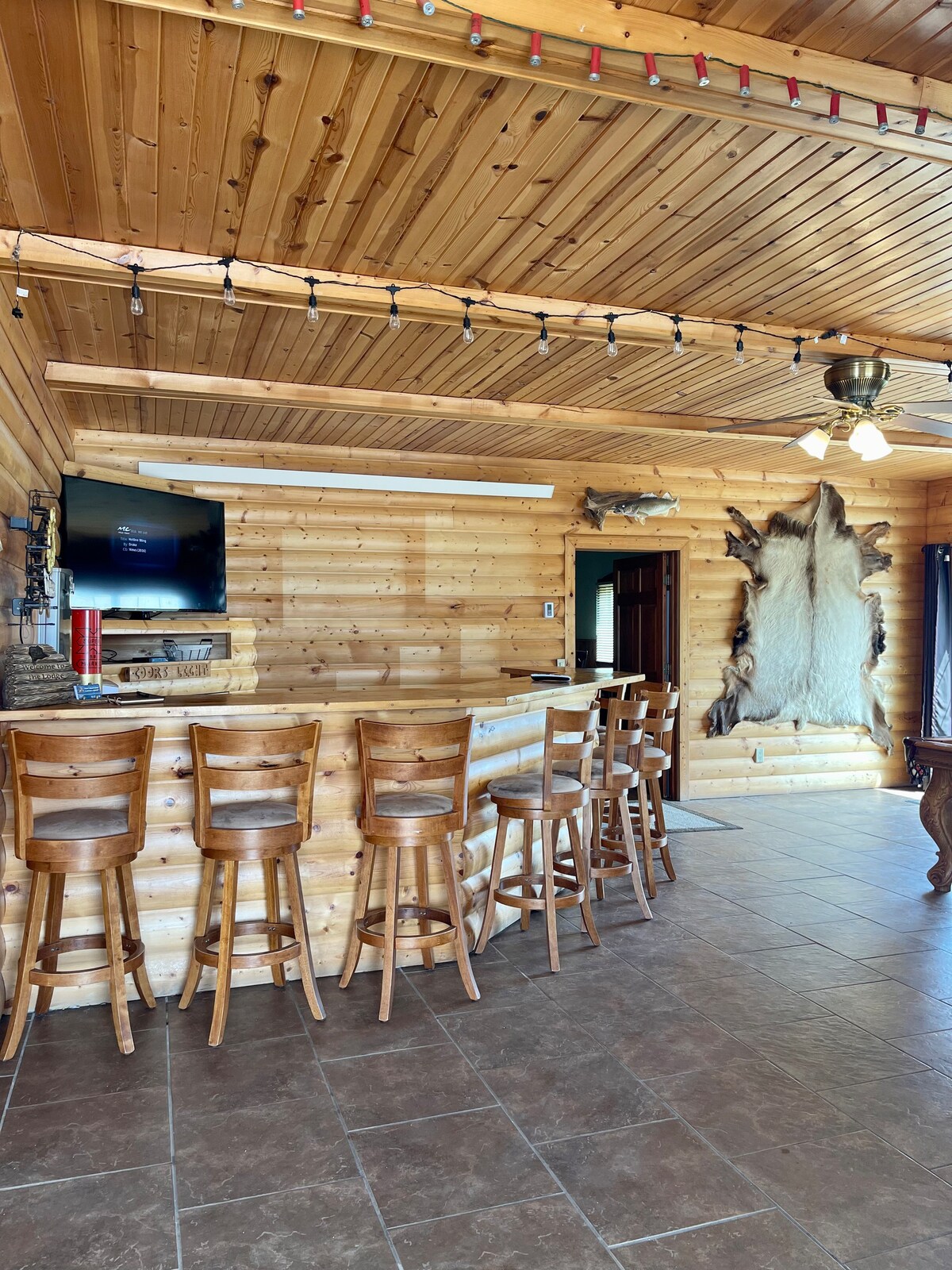 Driftwood Lodge is a lake cabin off the banks of the Missouri River with floor to ceiling scenic views of Prairie Dog Bay! This family owned vacation rental is located at Francis Case near the North Point State Park area and is in walking distance of 3 major boat ramps, paved bike/running trails and beach access. Ideal location for outdoor adventures including fishing, boating, kayaking, hunting, atv riding, bike riding, trail running and wildlife viewing. Deer and turkey are daily visitors!