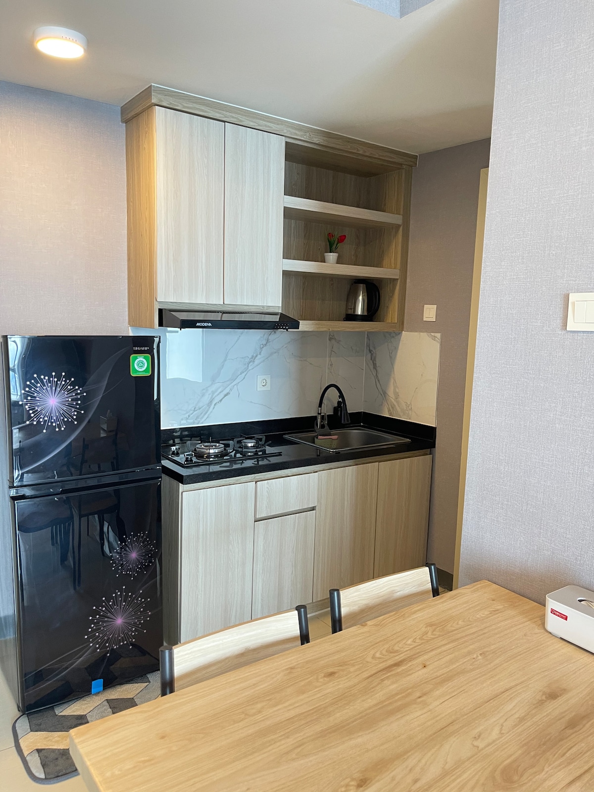 O Paneya @Benson Apartment apresenta o maior estúdio na Benson Tower. Acomodação luxuosa simples e moderna em localização conveniente acima do Surabaya Pakuwon Mall. O maior shopping da Indonésia. Tem acesso direto ao Shopping Pakuwon. Oferece paisagens verdes excepcionais durante o dia e belas luzes da cidade de West Surabaya à noite. Equipado com 2 camas tamanho queen (1 cama extraível), utensílios de cozinha, TV inteligente, banheiro privativo, secador de cabelo, geladeira e chaleira. Wi-Fi gratuito e Netflix também estão disponíveis