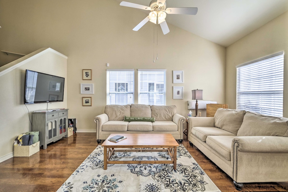 Quando precisar de um retiro tranquilo longe da confusão, reserve uma estadia nesta cabana de madeira de 3 quartos e 2,5 casas de banho em Fairland. O aluguer de férias está aninhado ao longo do Grand Lake O’ the Cherokees e oferece comodidades modernas, uma sala de jogos e home theater e um deck espaçoso equipado com uma banheira de hidromassagem privada! Quando não estiver a passar dias ensolarados no lago ou a acender a grelha para um jantar de churrasco, aventure-se em Monkey Island para mais diversão em família, deliciosa cozinha local e muito mais.