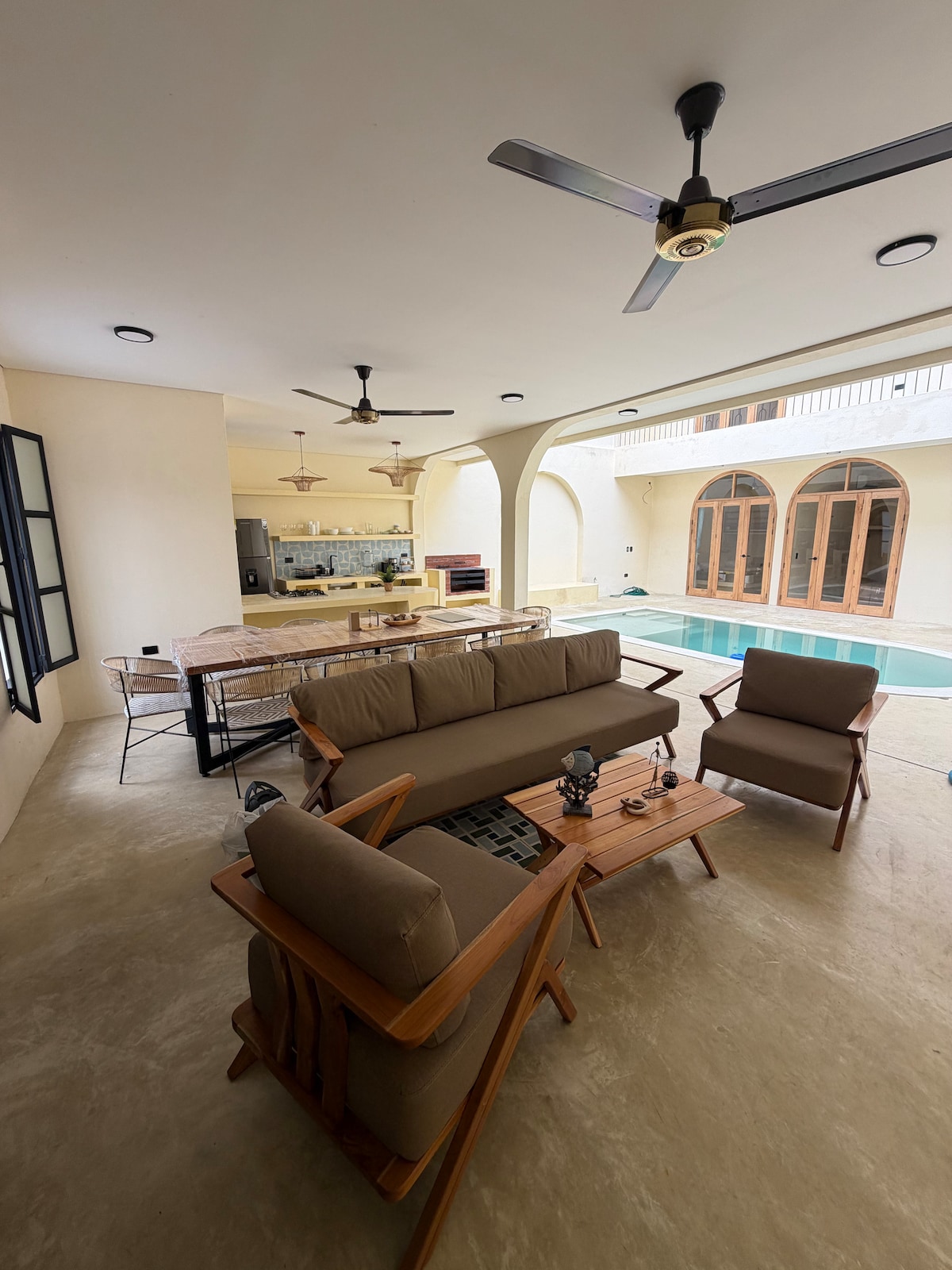 Casa colonial reformada, estrutura alta de madeira com telha de barro que a torna fresca e agradável. No exterior acompanha a estética da área e no interior é moderno, simples e com grandes espaços. Sua decoração preserva elementos antigos, como cadeiras, mesas e baús. O ambiente é agradável, amigável e cheio de luz, a piscina localizada no centro da casa está equipada com duas praias úteis para banhos de sol ou para o deleite de crianças pequenas.