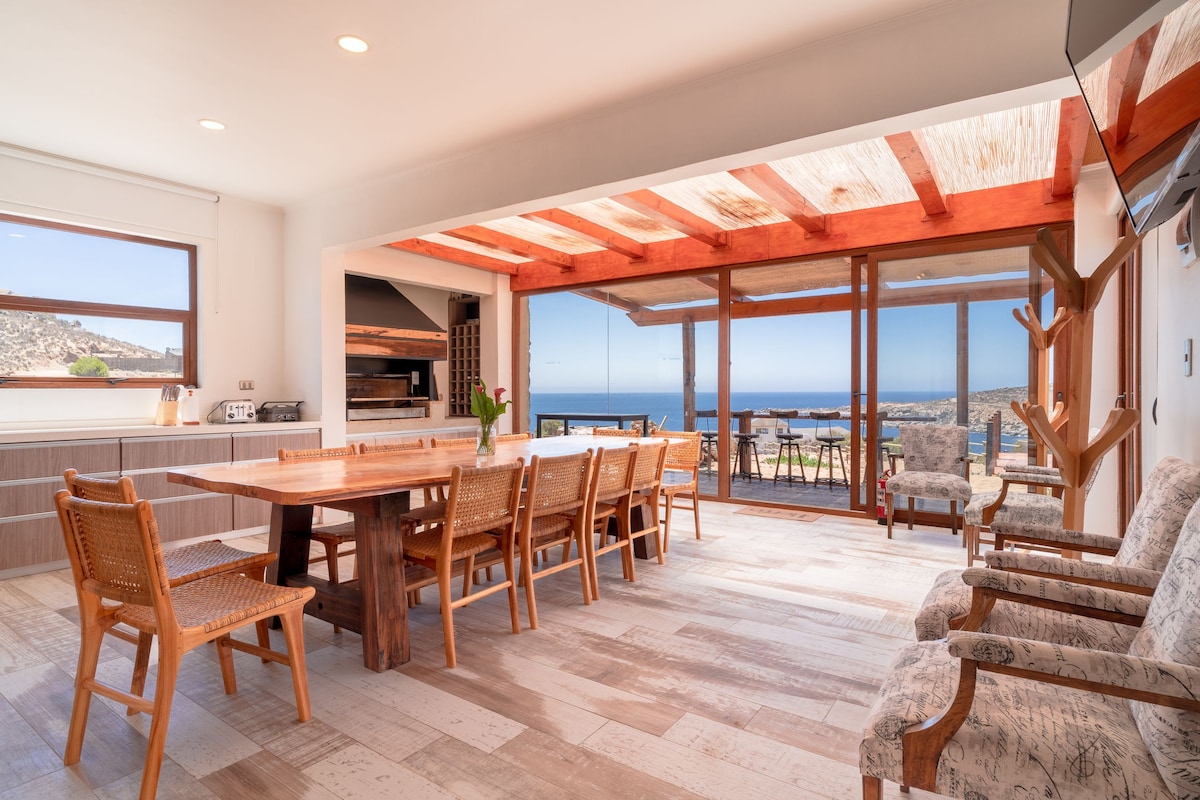 Cabana espetacular e segura em condomínio privado Algamar, que convida você a se conectar com o mar e a natureza em um belo ambiente e, em noites claras, você pode desfrutar de um maravilhoso céu estrelado. A cabana é um chalé adaptado com todas as comodidades necessárias e uma adega adaptada de quarto para tornar a sua estadia um momento inesquecível. Com acesso direto à praia e piscina exclusiva A 10 minutos de Tongoy e Guanaqueros Conta com 1 caiaque, piscina, quiosque
