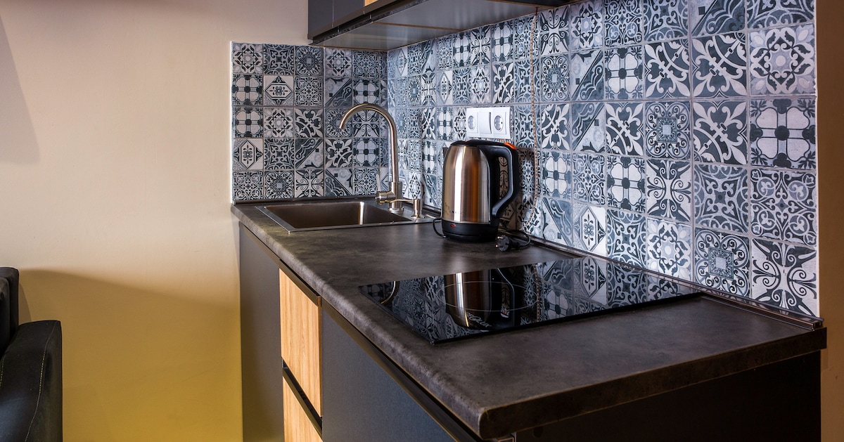 - Chemia Studio em Gudauri - tem um estilo industrial único, projetado pelo "Chemia Studio". O apartamento duplex é todo feito à mão, com materiais naturais de madeira, tijolo e aço. - Chemia Studio em Gudauri - oferece uma atmosfera única com uma banheira de hidromassagem agradável para relaxamento pós-esqui. Os entretenimentos duplex incluem: 1. projetor de filmes para noites de cinema; 2. PlayStation 5 Pro