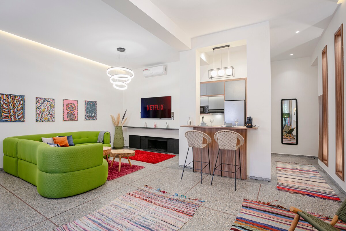 Descubra este apartamento moderno e boêmio no coração de Guéliz, com fácil acesso a pé ao melhor da cidade. Cozinha equipada, produtos de boas-vindas, lençóis e toalhas incluídos. Sala de estar com Netflix, fibra ótica e IboTV Player para uma ampla variedade de canais. Quarto confortável com roupa de cama Kinédorsale e muito espaço para guardar as suas coisas. Desfrute de um espaçoso terraço com balanço. Perfeito para uma experiência autêntica e confortável em Marraquexe. PS: casais marroquinos não casados não são permitidos.
