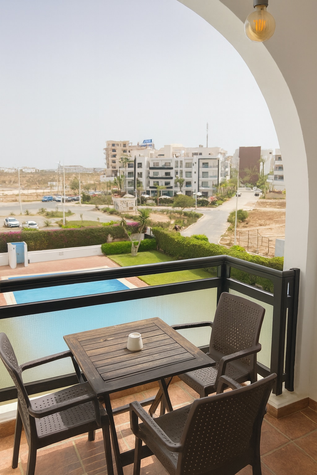Apartamento na Baía de Agadir, praia a 7 minutos a pé + vista para a piscina