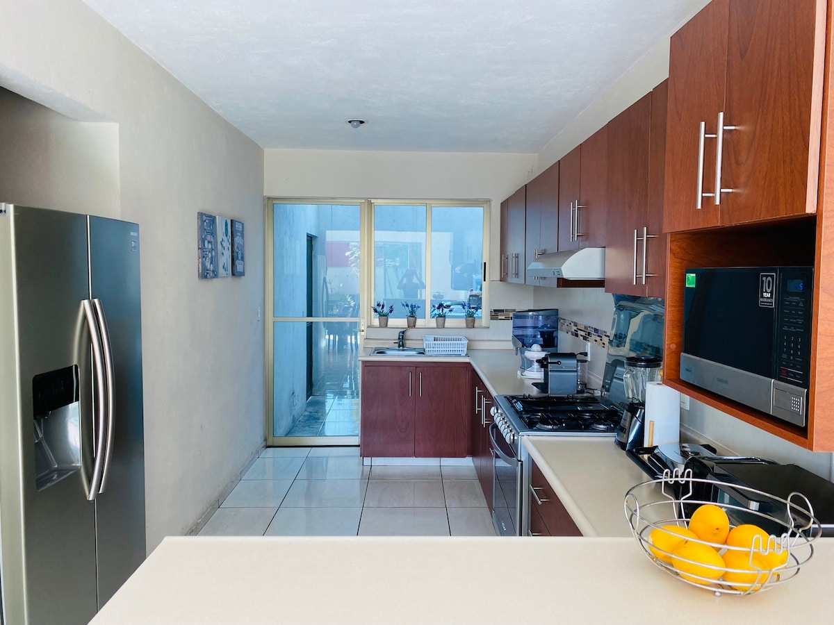 Relaxe com a sua família nesta bonita casa à beira-mar, possui Alberca, a apenas 15 minutos da área de Diamante Acapulco, perto de centros comerciais e recreativos. Tem tudo o que precisa para tornar a sua estadia mais agradável, como ar condicionado em todos os quartos, Internet, TV, frigorífico, máquina de café, máquina de lavar roupa, micro-ondas, Alexa e acesso a um agradável clube de praia a apenas 8 minutos do seu alojamento.