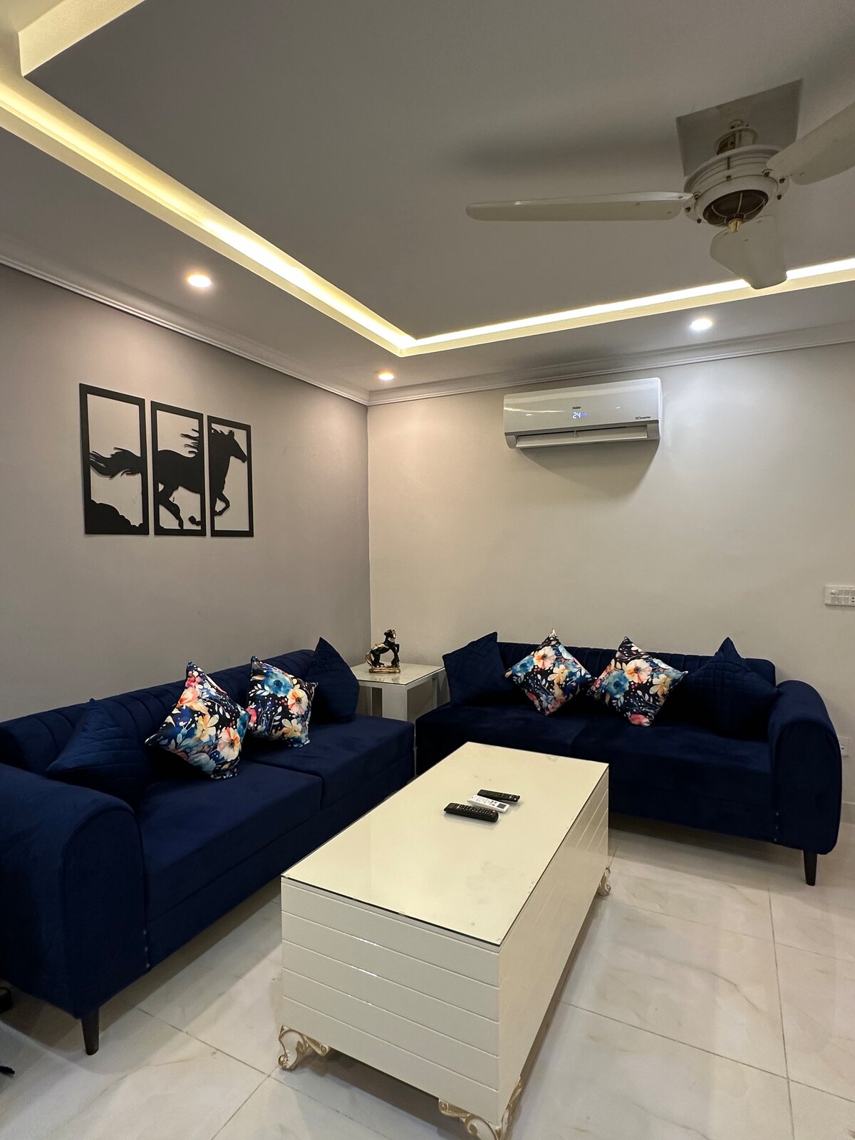 Apartamento moderno de 2 quartos em Gulberg, Lahore, perto de M.M Alam Rd.📍 Elegante, acolhedor e com localização central. 😇😌 Apresenta um espaçoso salão com decoração elegante, smart TV, PlayStation, Netflix, sofá confortável e área de jantar. 🎮🍿 Desfrute de ar condicionado e de um ambiente tranquilo perto dos melhores restaurantes, cafés e centros comerciais. 🛍 Ideal para famílias, casais, viajantes de negócios ou pequenos encontros como festas de aniversário e eventos. 🎉🎊 PS: terá de usar as escadas para o 4º andar, pois o elevador não está instalado.