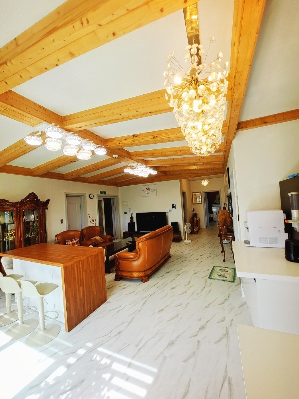 É um espaço adequado para famílias, pois está localizado no centro. Construímos este espaço remodelando um hanok (casa tradicional coreana) construída há 160 anos, durante um ano e seis meses. Temos uma piscina de água quente onde você pode nadar durante todo o ano. O nome da pousada, Maruyeon, significa céu em dialeto, e o lago significa uma piscina maravilhosa. Tire uma vírgula silenciosa em Maruyeon, onde há um céu e um lago maravilhoso.