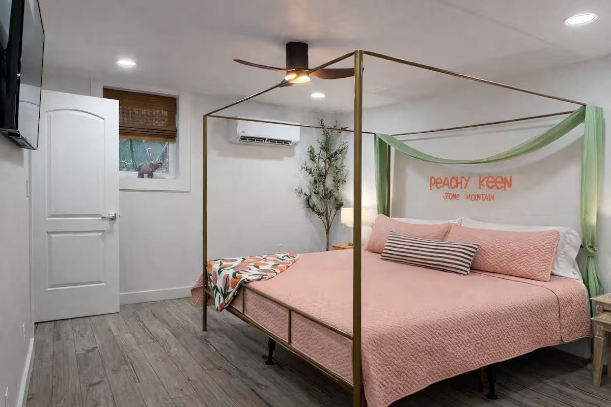 Venha ficar na nossa pequena fazenda! Ótima localização dentro do perímetro ATL. Entrada privada sem chave Vaga de estacionamento exclusiva Espaço aberto cheio de luz Cozinha funcional completa Banheiro completo Pátio privado, cerca de privacidade fechada de 8' Café da manhã simples e complementar Internet de fibra de alta velocidade com Wi-Fi de 6 velocidades Carregamento de nível 2 com plugue NEMA 14-50/50 amps Espaço de trabalho separado TV com serviços de streaming