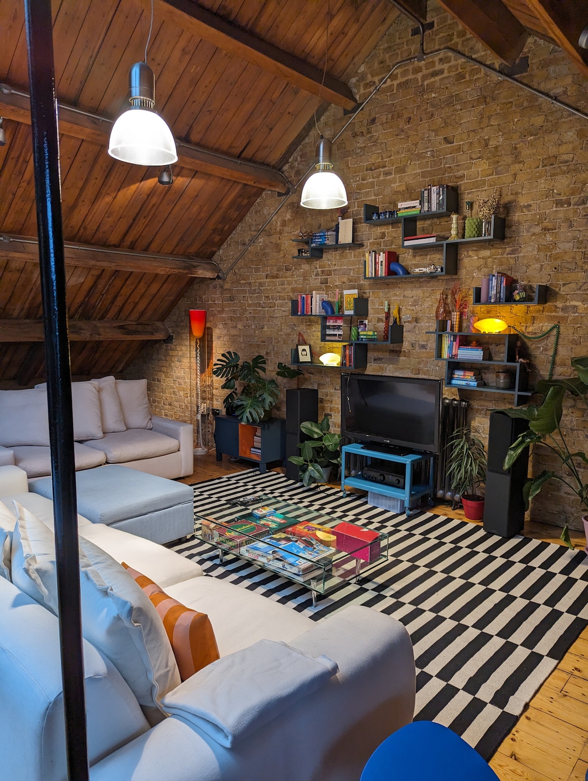 Um loft de estúdio em plano aberto ao longo do canal no leste de Londres. O apartamento é o piso superior de uma loja de grãos de 4 andares da década de 1850. Perfeitamente localizado para explorar todo o leste de Londres, incluindo o Broadway Market, o Colombia Road Flower Market e a Brick Lane. O apartamento é um quarto grande e uma casa de banho grande. A área do quarto está situada ao lado. Tem um terraço generoso que recebe o sol durante toda a manhã com uma mesa e cadeiras. Adoraríamos que ficasse na nossa casa espaçosa, confortável e colorida.