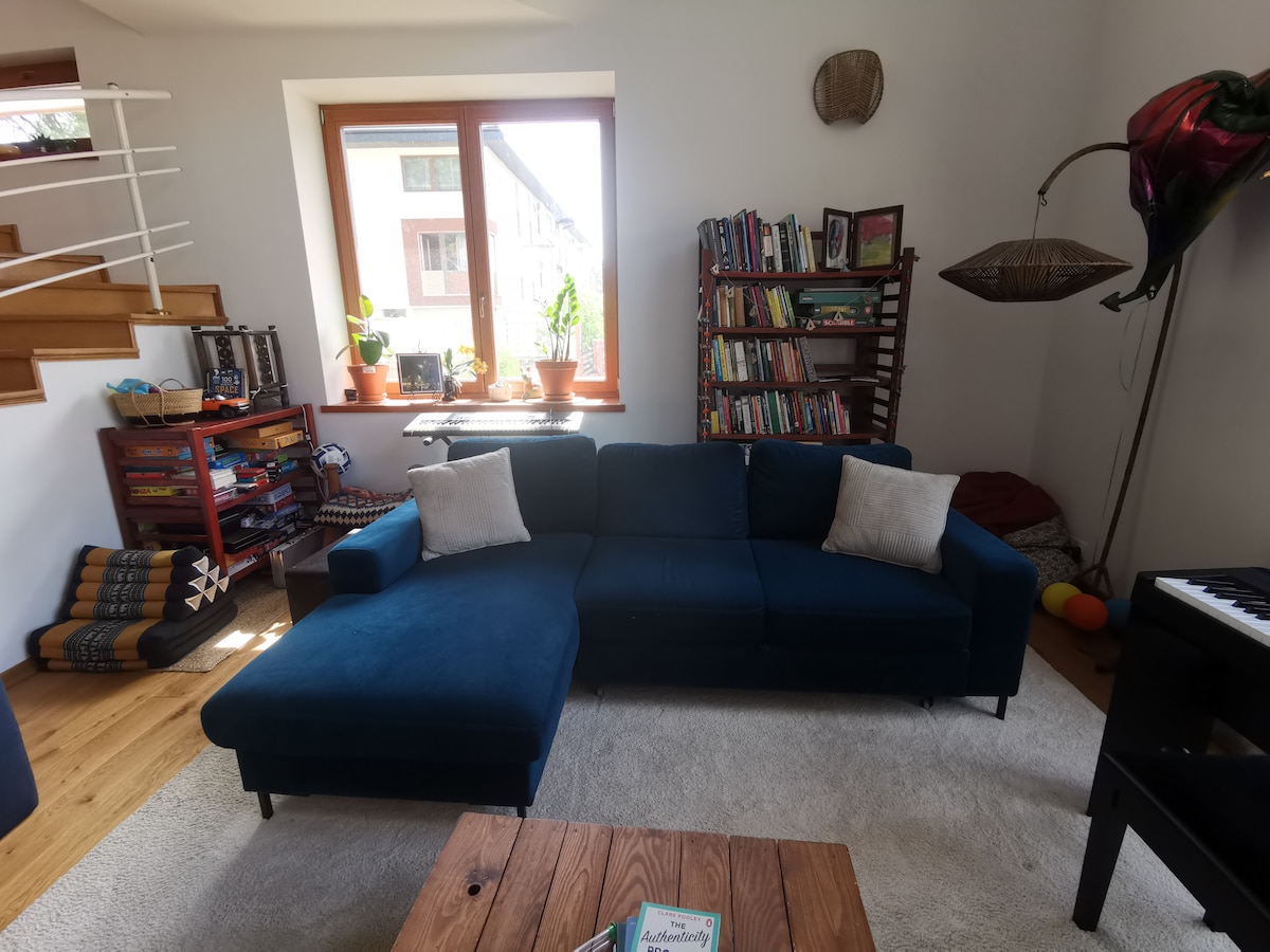 O apartamento com uma atmosfera especial está localizado no coração do centro da cidade com uma porta que se abre diretamente para a rua pedonal. O afresco de teto abobadado pode ser inspecionado confortavelmente pelo hóspede a relaxar na banheira. A lareira elétrica pode fazer com que se sinta intimidado numa noite romântica ou depois de um dia agitado. A cozinha moderna tem a opção de preparar pratos mais simples, mas a solução mais fácil é escolher entre excelentes restaurantes a poucos minutos de distância.