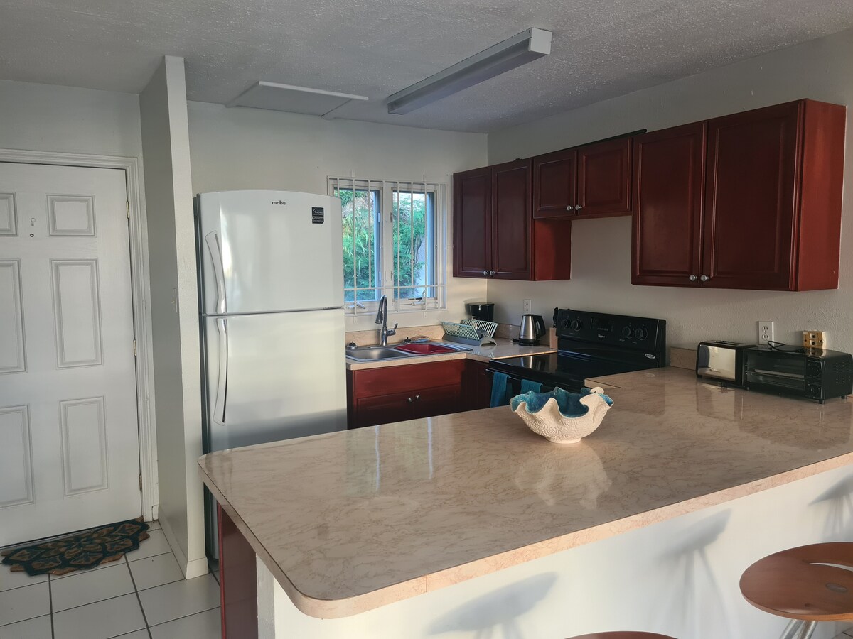 Just 7 minutes’ drive from beaches & the lively Frigate Bay Strip, this spacious 1-bedroom retreat blends convenience with tranquility. Located in a quiet residential area, it’s ideal for guests seeking a relaxing stay near top dining and nightlife. Enjoy your private saltwater pool & outdoor kitchen/BBQ (8 AM–8 PM), plus a fully equipped home with A/C, kitchen, washer/dryer, workspace, & pull-out sofa bed. Unwind on your breezy balcony surrounded by tropical palms and a calm Caribbean vibe.🌴
