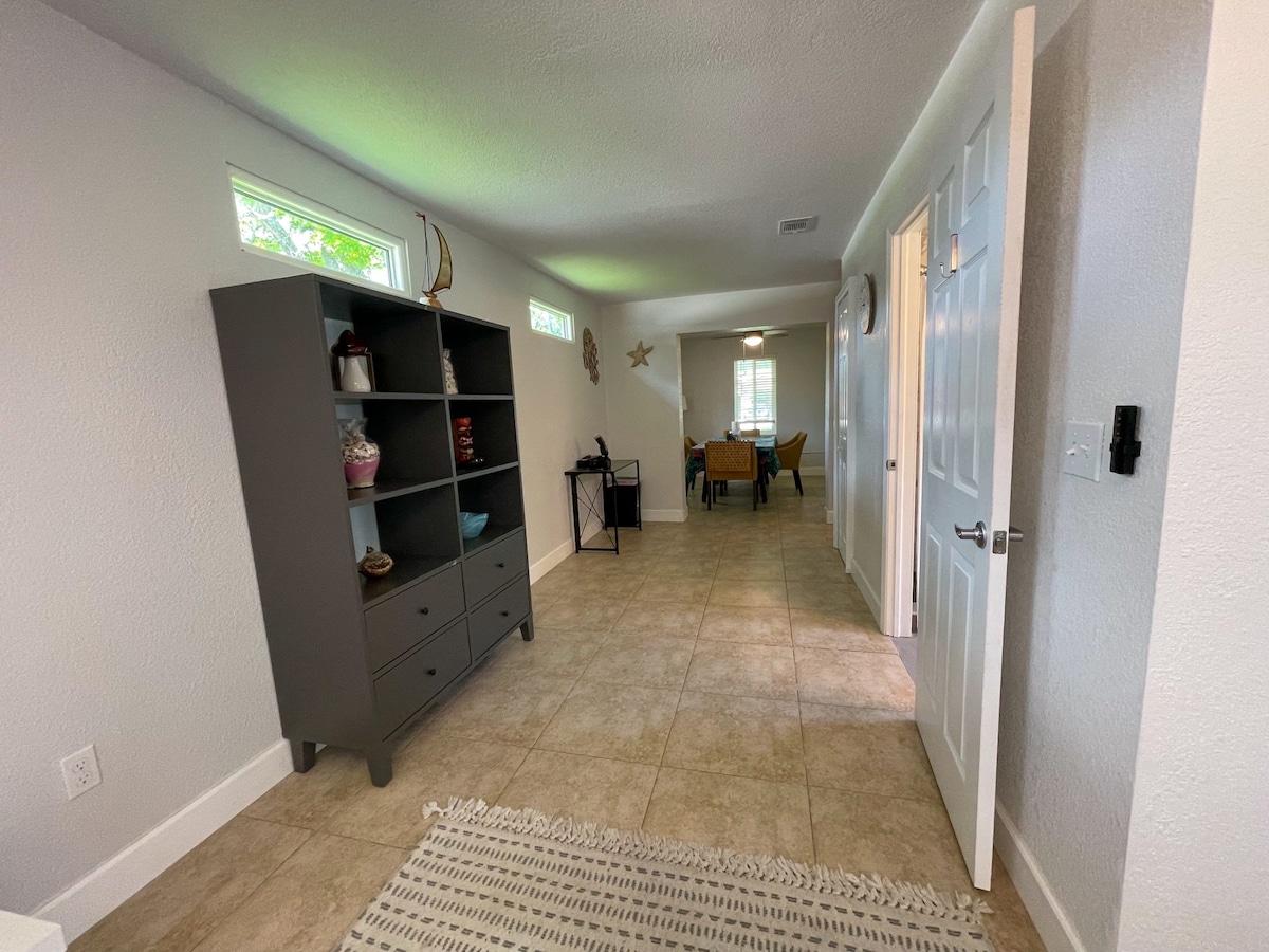 Desfrute da sua estadia na Flórida numa elegante casa de hóspedes, recentemente renovada e com localização central! A casa de hóspedes é completamente independente e privada da casa principal: terá a unidade inteira durante a sua estadia. Bancadas de quartzo, máquina de lavar/secar, cama queen e sofá-cama com roupa de cama adicional. Dorme 4 confortavelmente! A 9 minutos da praia, a 15 minutos do Daytona International Speedway, do aeroporto e dos outlets Tanger. A 5 minutos do campo de golfe Riviera. Mercearia (Publix) e parque à beira do rio/parque infantil cercado nas proximidades.