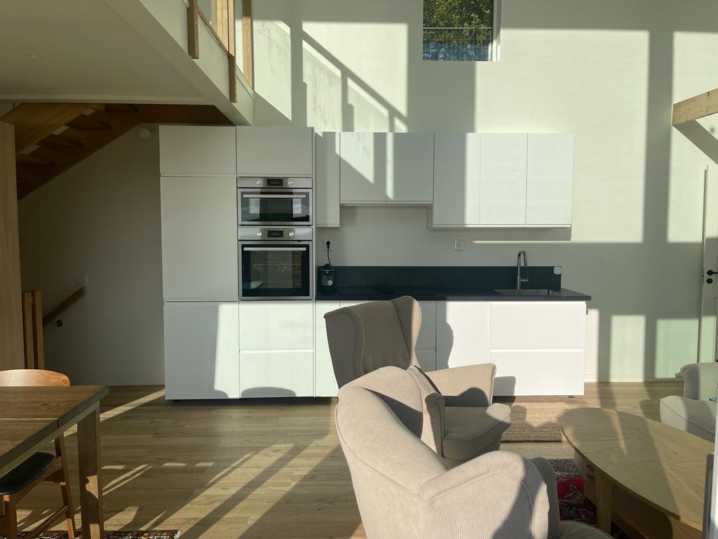 Relaxe com a família e amigos nesta acomodação tranquila localizada em uma colina com belas vistas da natureza. A casa tem dois andares e a área total é de 230 m², além de um porão e garagem. A casa foi recentemente reformada (exceto a cozinha). A varanda de 50 m² está equipada com uma mesa para 10 pessoas, churrasque a gás e espreguiçadeiras. A sala de estar é adjacente à varanda e acomoda uma grande mesa de jantar e espaço para todos. Há jogos ao ar livre, gols de futebol, piscina inflável, brinquedos, jogos de tabuleiro, etc.