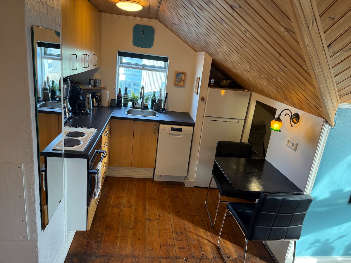 Você tem uso exclusivo deste apartamento por toda a sua estadia conosco - você não compartilhará nada com outros hóspedes. Este estúdio no 4º andar fica na parte traseira do edifício. É pequeno, limpo e arrumado. É perfeito como um crash pad para pessoas que exploram Reykjavik por alguns dias. Por favor, saiba que é um apartamento pequeno e o banheiro é compacto O banheiro é realmente pequeno e o chuveiro tem apenas 60 x 60 cm (é muito compacto).