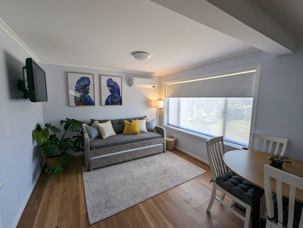 Escape to a coastal haven in Forster, just a 30-second stroll from the pristine One Mile Beach. Our Airbnb offers a serene one-bedroom retreat for two, blending modern comfort with seaside tranquility. Wake up to the sound of waves, and immerse yourself in the coastal lifestyle. Whether it's beachcombing, surfing, or simply basking in the sun. With thoughtful amenities and proximity to local gems, this Airbnb promises a rejuvenating escape for those seeking the perfect beachside getaway.