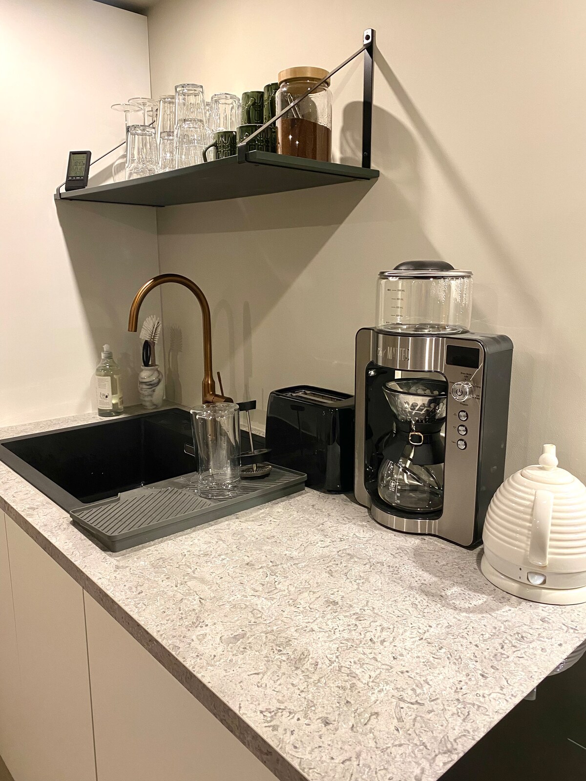 Um apartamento de 2019 com uma grande casa de banho, quarto e sala de estar/cozinha. Entrada privada pelos fundos da casa e acesso ao estacionamento na frente da casa. O resto da casa é ocupado por nós e temos três filhos que podem fazer algum barulho. Caso contrário, o estúdio está separado da casa por uma porta à prova de fogo e à prova de som, que está trancada com uma chave. A TV só está disponível para AirPlay e sem aplicações/canais