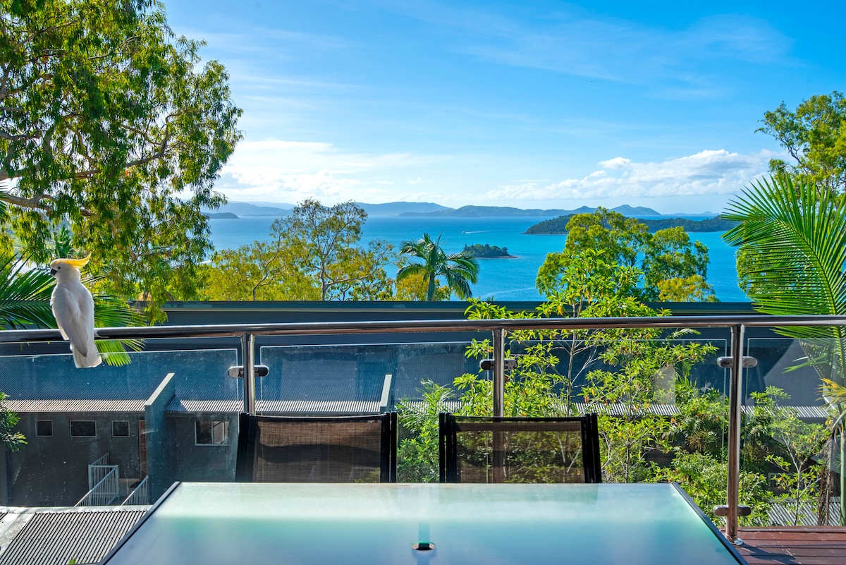 COMPASS POINT 5 - Esta espetacular moradia recém-mobiliada tem vistas DESLUMBRANTES para as ilhas Dent e Plum Pudding. Favorito dos hóspedes: uma das propriedades mais apreciadas na Airbnb de acordo com os hóspedes! Está idealmente localizado para um fácil acesso à Grande Barreira de Corais e outras Ilhas Whitsunday. Inclui transferências de valet gratuitas e buggy de golfe. Acomoda um máximo de 7 adultos e 1 bebé com várias configurações de roupa de cama. Uma das propriedades mais procuradas das Ilhas!