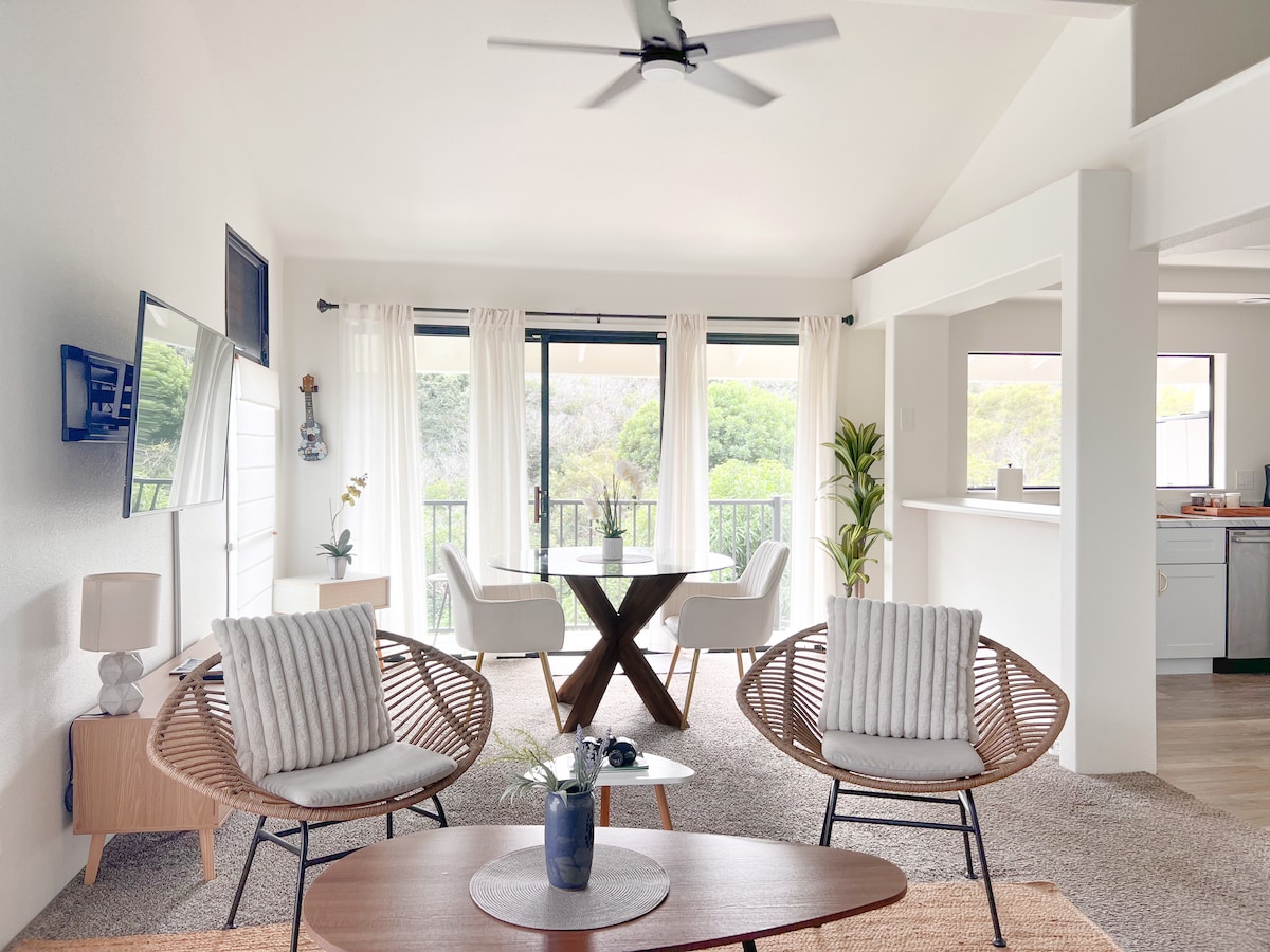 Seu belo acampamento base para aventura espera por você! Suíte de hóspedes recentemente renovada e totalmente equipada acima da garagem da nossa casa de família. Lanai privativo, vista para o mar, bicicletas, caiaque, SUP e prancha de surfe inclusos no valor do aluguel. Unidade iluminada e arejada com lindos tetos abobadados, lençóis brancos frescos, um colchão com a parte superior de travesseiro e café para começar a sua manhã. Temos tudo o que você precisa para explorar esta ilha mágica - recentemente apresentada na Condé Nast como um dos principais Airbnbs do Havaí!