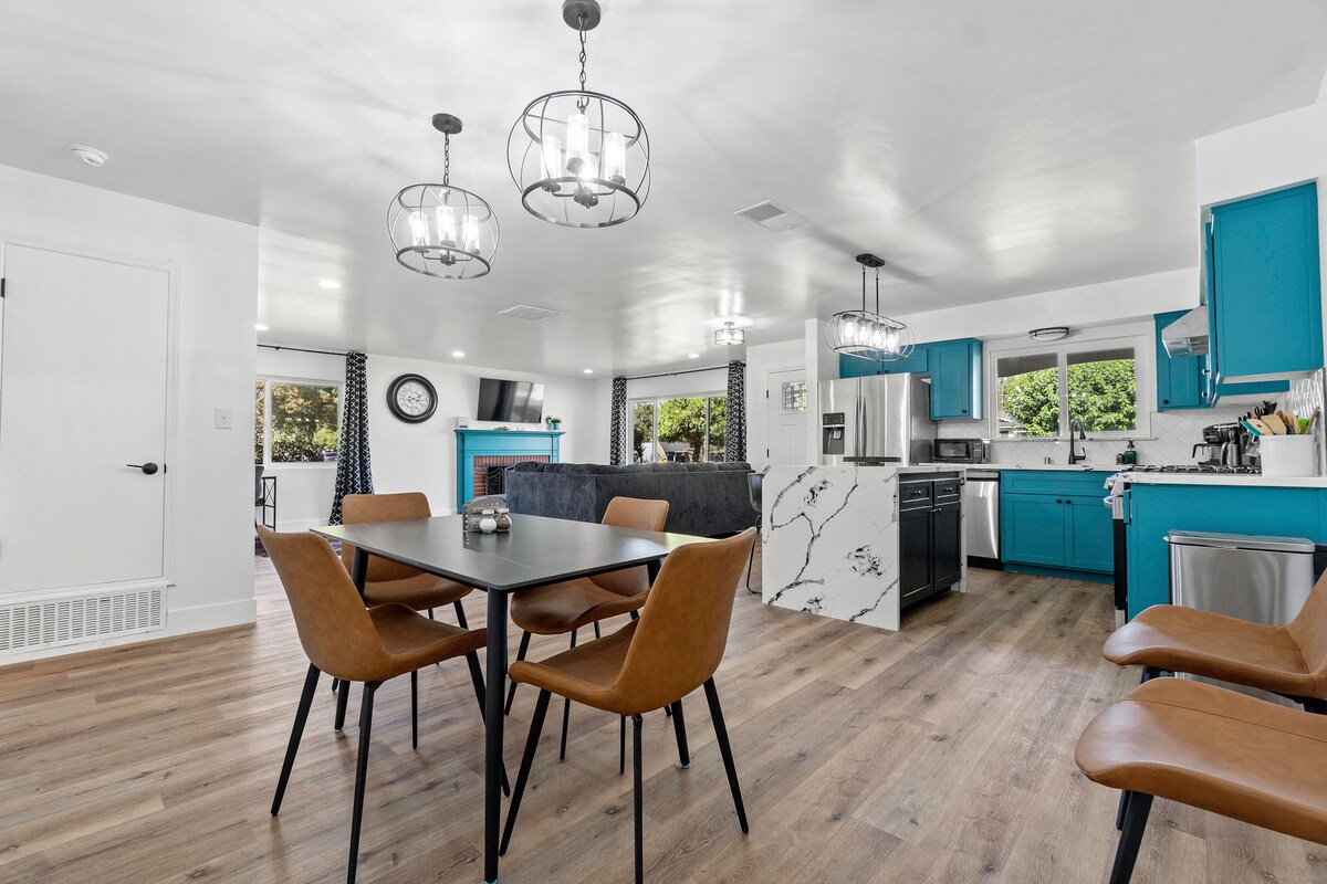 Leve toda a família a este ótimo lugar com muito espaço para se divertir. Quatro quartos, cinco camas e dois banheiros, cozinha totalmente equipada com todos os itens essenciais de cozinha, churrasqueira, panelas e frigideiras, panela de arroz, cafeteira K-cup, estações de trabalho dedicadas, TV de 65 polegadas na sala de estar. Três dos quatro quartos equipados com TVs também. Colchões de espuma de memória, grande quintal com árvores frutíferas. Convenientemente localizado em SE Visalia, a apenas 35 minutos do Parque Nacional da Sequoia. Animais de estimação são bem-vindos.