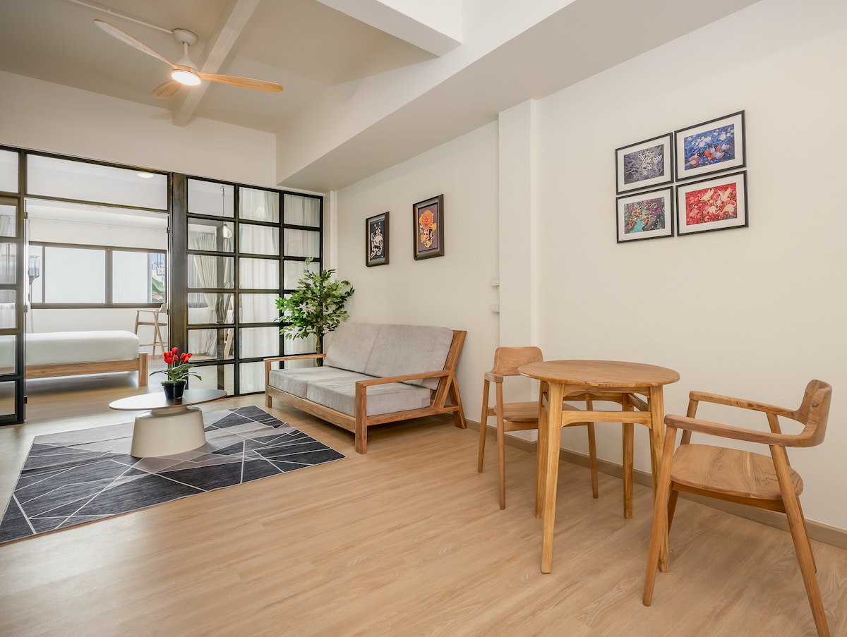 Lanna Charm é uma moradia geminada acolhedora e confortável decorada em estilo elegante de herança Lanna. O espaço oferece um grande quarto estúdio com ar condicionado e duas camas king-size, além de um quarto individual privado com um ventilador, ideal para famílias ou pequenos grupos. Desfrute de uma cozinha espaçosa e bem equipada e de um ambiente tranquilo, a apenas 2 km de Nimmanhaemin. Perfeito para relaxar depois de um dia na cidade, com espaço, conforto e localização que tornam cada estadia sem esforço. Ficamos a aguardar a sua visita.