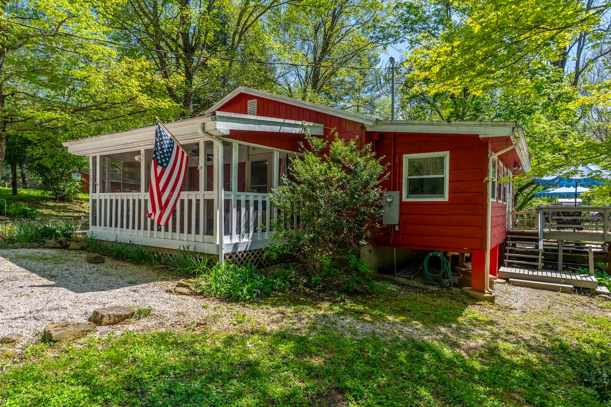 Relaxe com toda a família neste alojamento tranquilo. Muito espaço para diversão ao ar livre! Fachada de Blue River e acesso para nadar e andar de caiaque. A 3 minutos de Cave Country Canoes! 2 camas queen, sofás, futon e muito espaço ao ar livre para os hóspedes que acampam em tendas. Grande espaço exterior vedado para animais de estimação também! Bar na garagem com jogos ao ar livre e armazenamento adicional para manter a diversão!