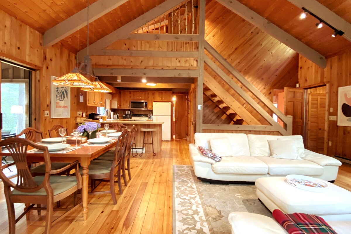3br bedroom Adirondack lodge, complete with wrap around porch on our 36 acre waterfront estate. Updated kitchen with island bar and laundry. WiFi, high speed internet+fire tv. NewCentralAC. Estate featured on HGTV and The Wall Street Journal. “Salem Woods” on Gardner Lake features an amazing shared indoor 8000 sq. Year round:salt water pool & spa, hot tub, sauna, & steam room. Enjoy: walking trails, half a mile of private sandy beach, 2 docks, fire pits, canoes, kayaks, fishing, water sports.