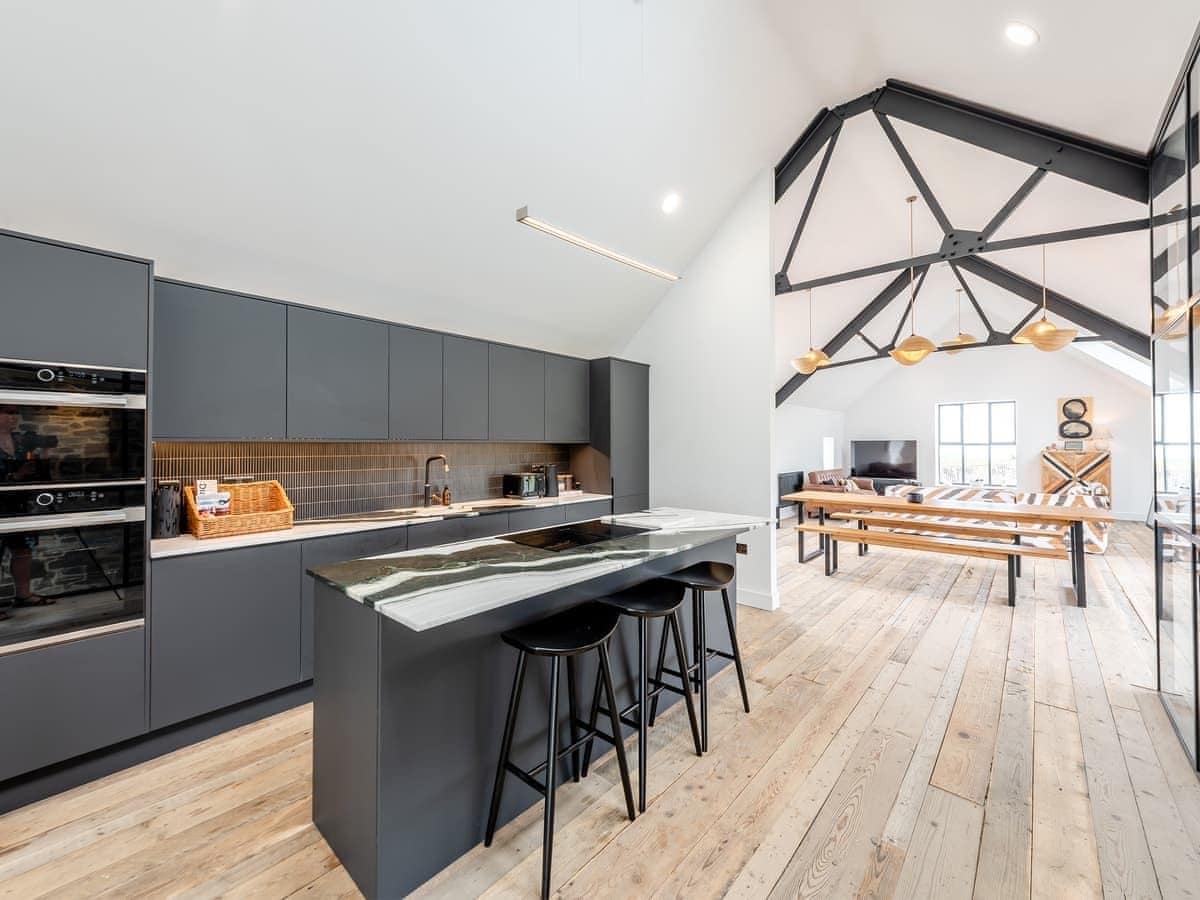 Celeiro moderno na costa norte de Devon com vista para o mar - 12 camas
