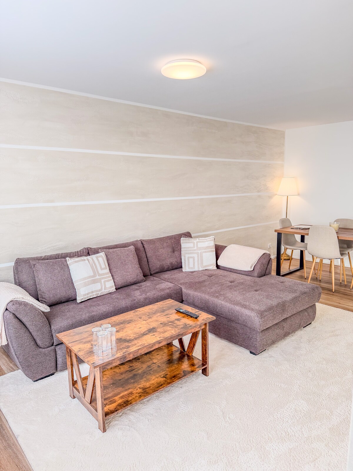 Bem-vindo (a) ao nosso apartamento de dois quartos de 57 m2! O quarto (n.º 1) tem uma cama de casal, toucador, roupeiro e varanda. O quarto (n.º 2) dispõe de camas individuais, sofá e Smart TV grande. Na cozinha completa há também uma mesa de jantar para 4 pessoas e uma máquina de lavar roupa. Existem - Estações de autocarros - Cafés - Restaurantes - Baker - Volksbank e Sparkasse - Lojas (Penny, DM, Rewe, Takko)
