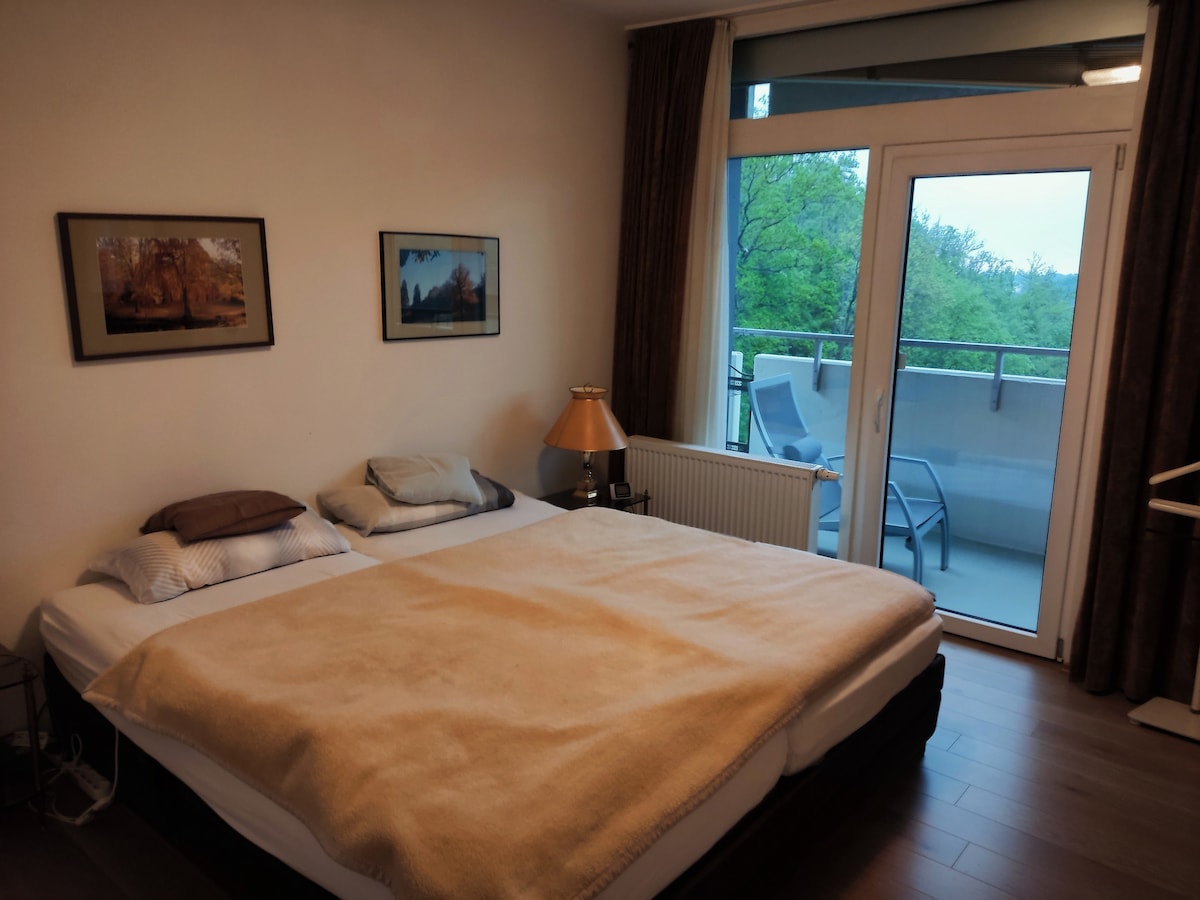 Apartamento de dois quartos bem mobilado e tranquilamente localizado com varanda no 12º andar com vista para o Burgberg. Piscina+sauna (gratuita) e pista de bowling (por uma taxa) na casa (2º andar). Soletherme, parque de spa, zona pedonal com restaurantes e várias lojas, trilho na copa das árvores, teleférico até à montanha do castelo a uma curta distância a pé. Amplas oportunidades para caminhadas, no inverno para esqui e tobogã.