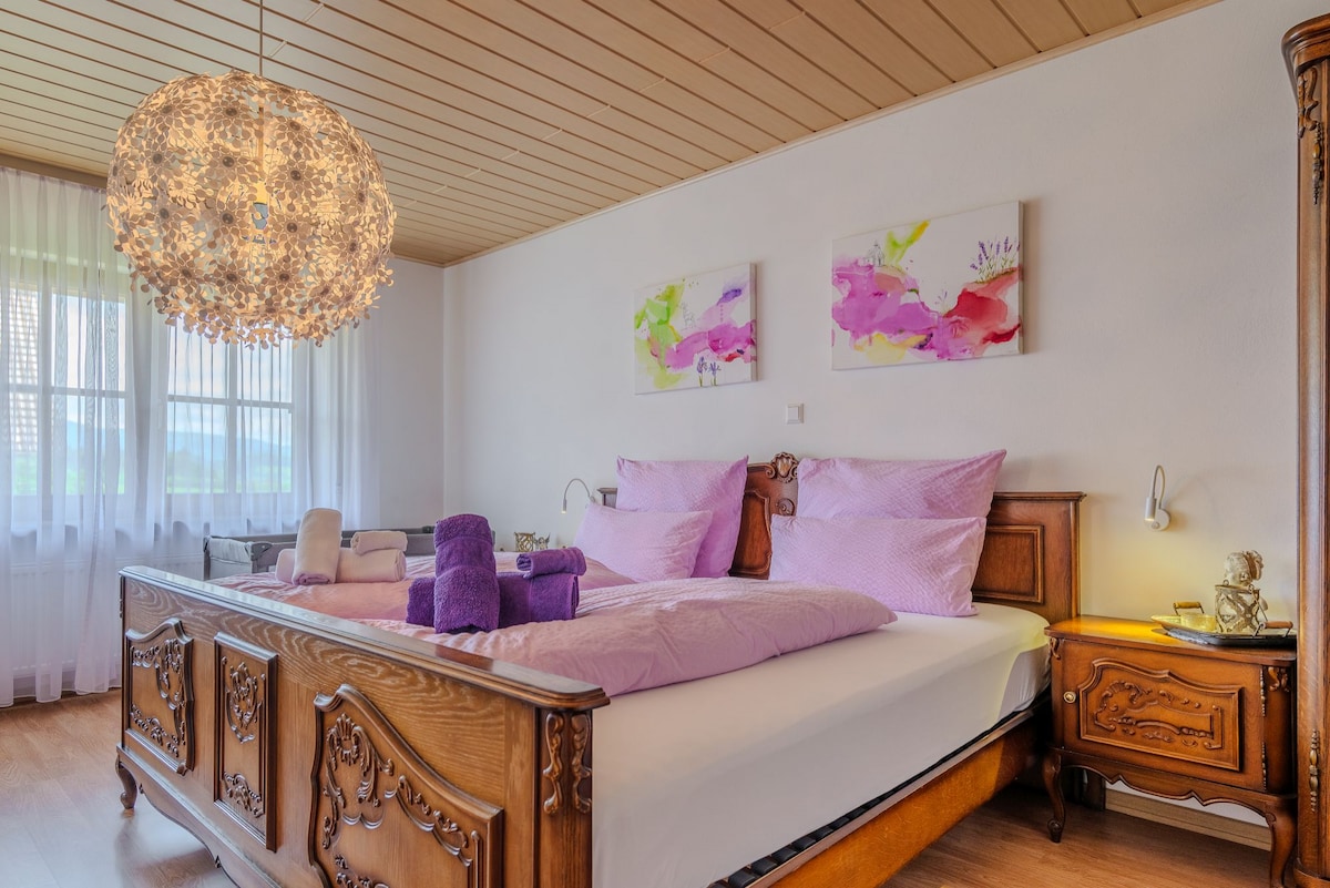Nosso apartamento tranquilo está muito bem localizado no campo. Com uma grande varanda, um belo e espaçoso banheiro com luz natural, quartos muito tranquilos e uma grande cozinha. Perfeito para relaxar ou visitar vários lugares que fazem bem para você. Jardim de ervas à la Hildegard Bingen ou cidades maravilhosas. Nas proximidades, você encontrará oportunidades de recreação ideais: a natureza à sua porta ou o Europapark em Rust . Claro com Konus - mapa para Zweitälerland. Emocionante !!