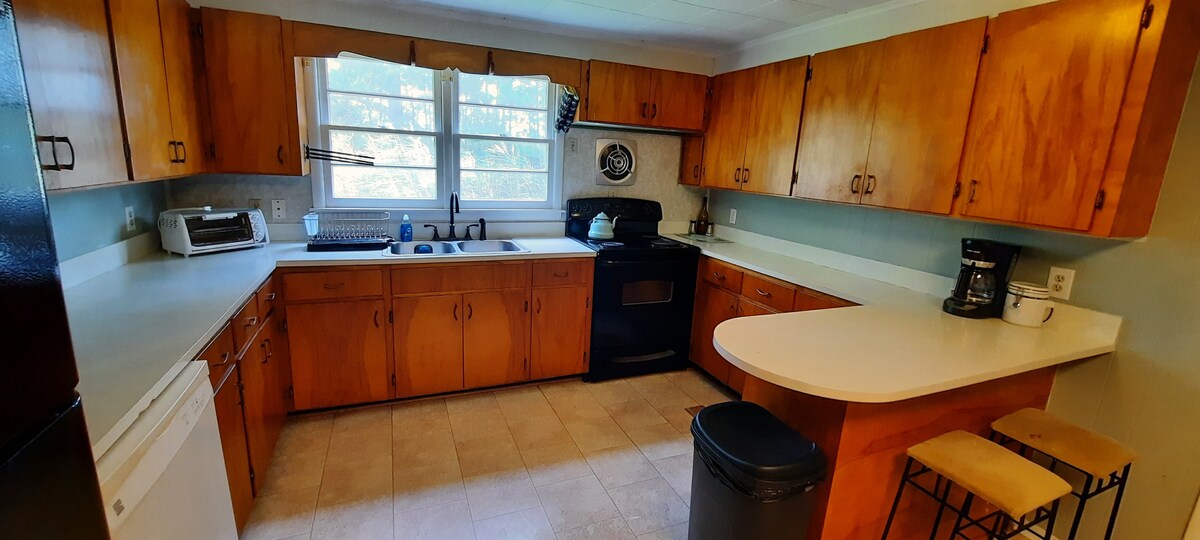 Located in the forested dunes of Roanoke Island, Crews Cottage is attached to the main house of owners through a breezeway and screened porch. No steps! (See Accessibility section.) Approximately 1000 square feet in total size, it features a large private bedroom (queen bed) with bathroom/shower. The great room has a pullout sofa bed (full) and love seat bed (twin). Kitchenette features full-sized refrigerator, convection microwave oven, toaster, and coffee maker. Sorry, no pets.
