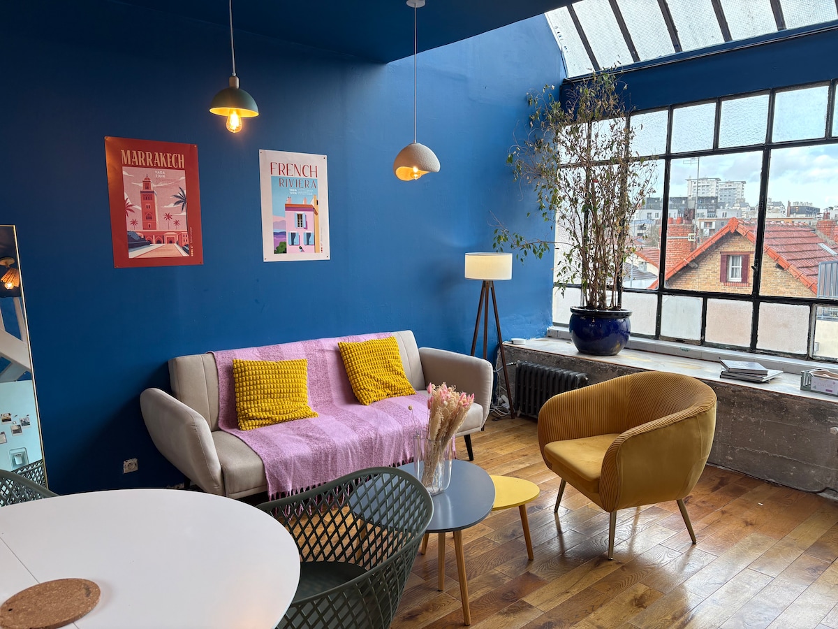 ⭐ Muito bem avaliado pela tranquilidade e rápido acesso a Paris. Hospede-se em um loft de design luminoso a apenas 2 minutos do metrô Mairie de Clichy (linha 13), com acesso direto ao centro de Paris em 10 minutos. Ideal para uma escapada romântica ou viagem de negócios, oferece cama confortável, sala aconchegante, espaço de trabalho com Wi-Fi de alta velocidade, residência segura e self check-in para uma chegada sem stress.